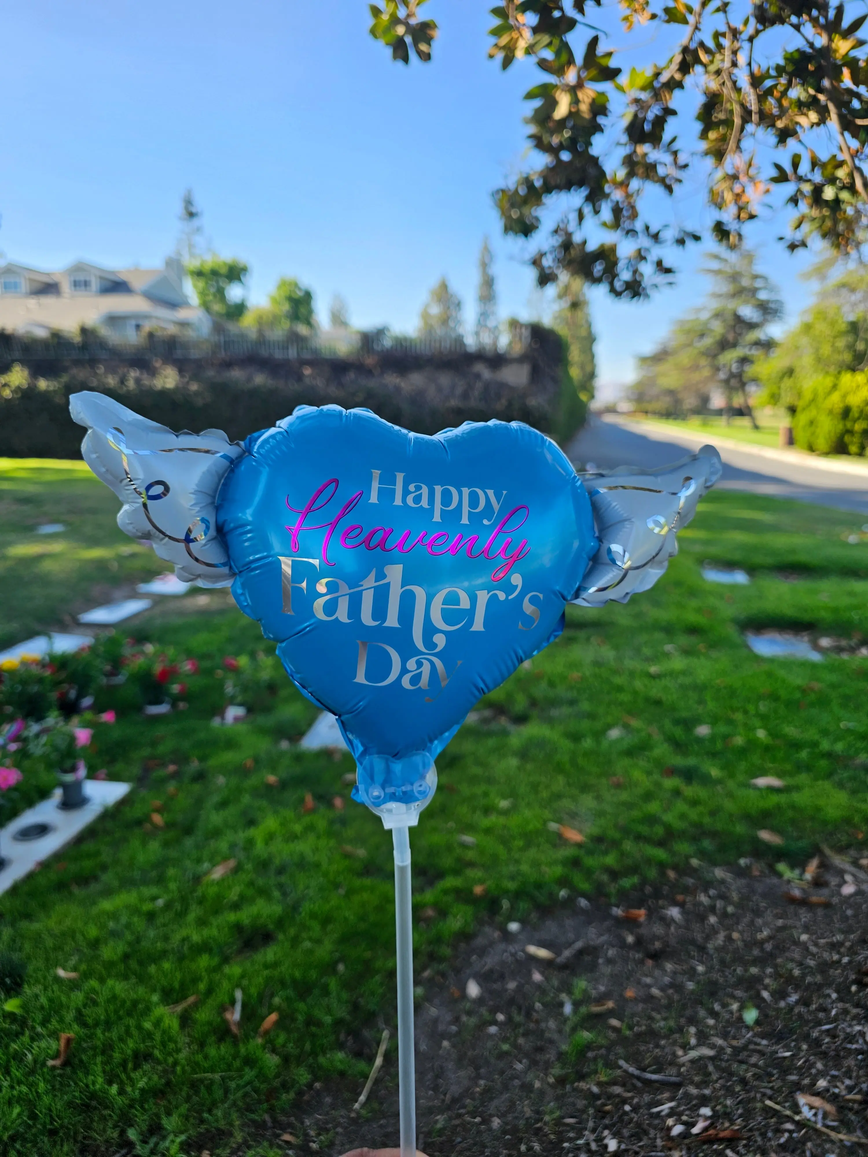 Father's Day is one of the most bittersweet days of the year for every child who has lost their dad. Our Happy Heavenly Father's Day Memorial Balloon on a Stick with Angel Wings is lovingly crafted for sons, daughters, and families who want to honor and celebrate their beloved father on Father's Day at the graveside, cemetery, or any meaningful place of remembrance — bringing a moment of color, love, and heartfelt tribute to a day that still belongs to him.