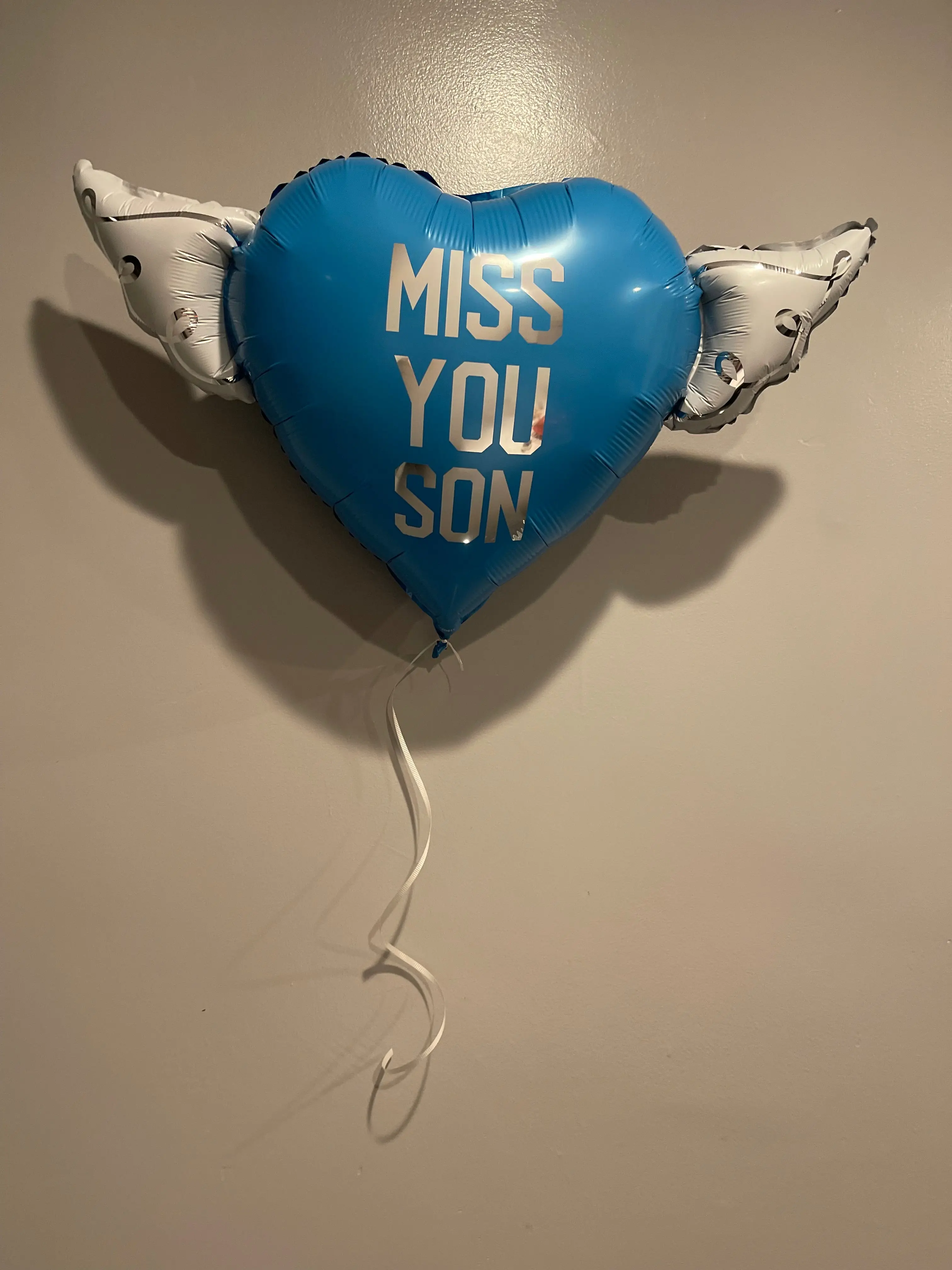 Whether you are visiting the graveside on your son's heavenly birthday, honoring his memory on a special anniversary, bringing flowers and this balloon to his headstone on a quiet Sunday afternoon, marking a day that should have been filled with his laughter and his presence, or simply needing to feel close to the son whose absence reshapes every single day — this Miss You Son memorial balloon with angel wings is a beautiful and lasting way to say you were the greatest gift of my life, I carry you with me in everything I do, and I will never stop missing you.