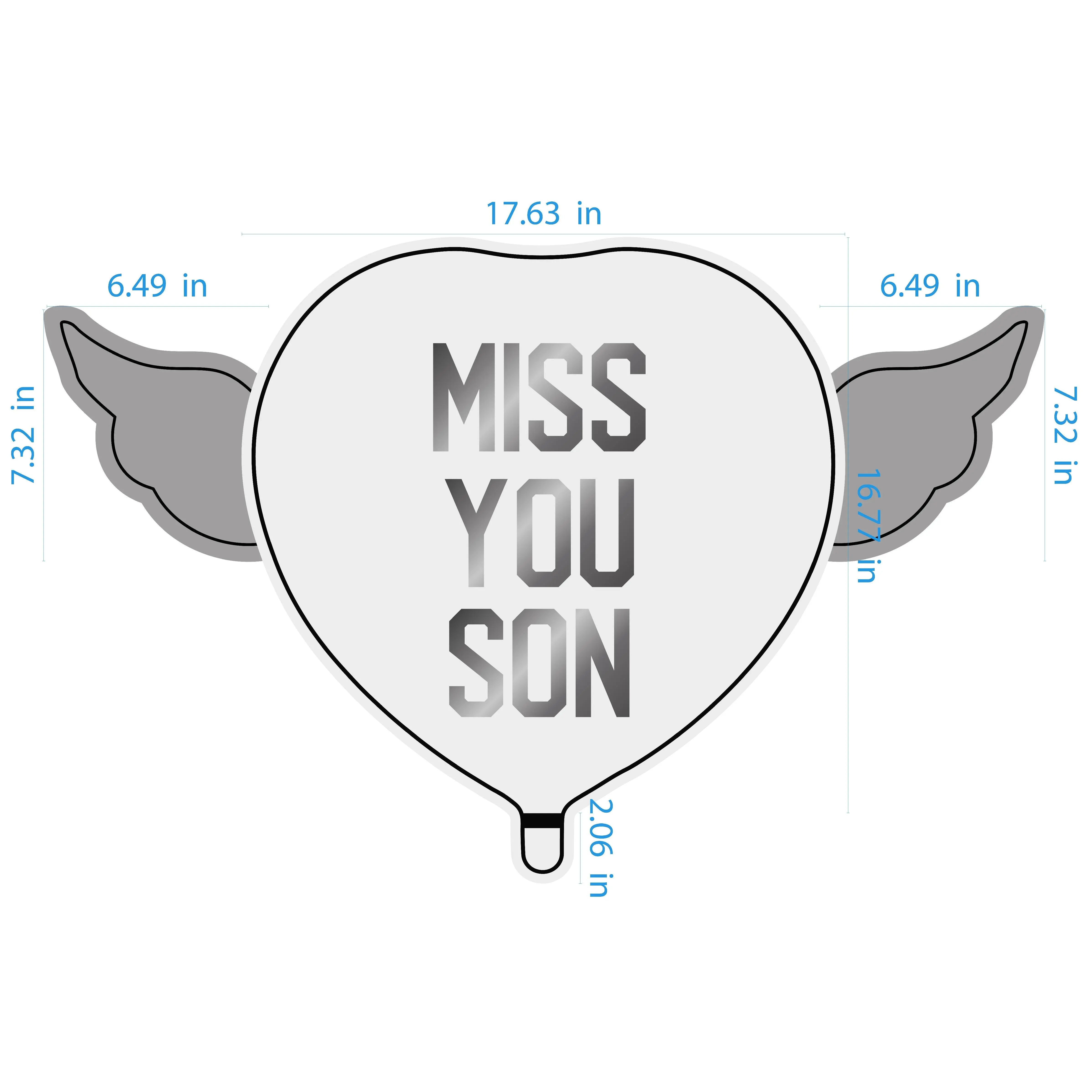Miss You Son Memorial Balloon with Angel Wings – Heart Shaped Graveside Tribute for Your Son