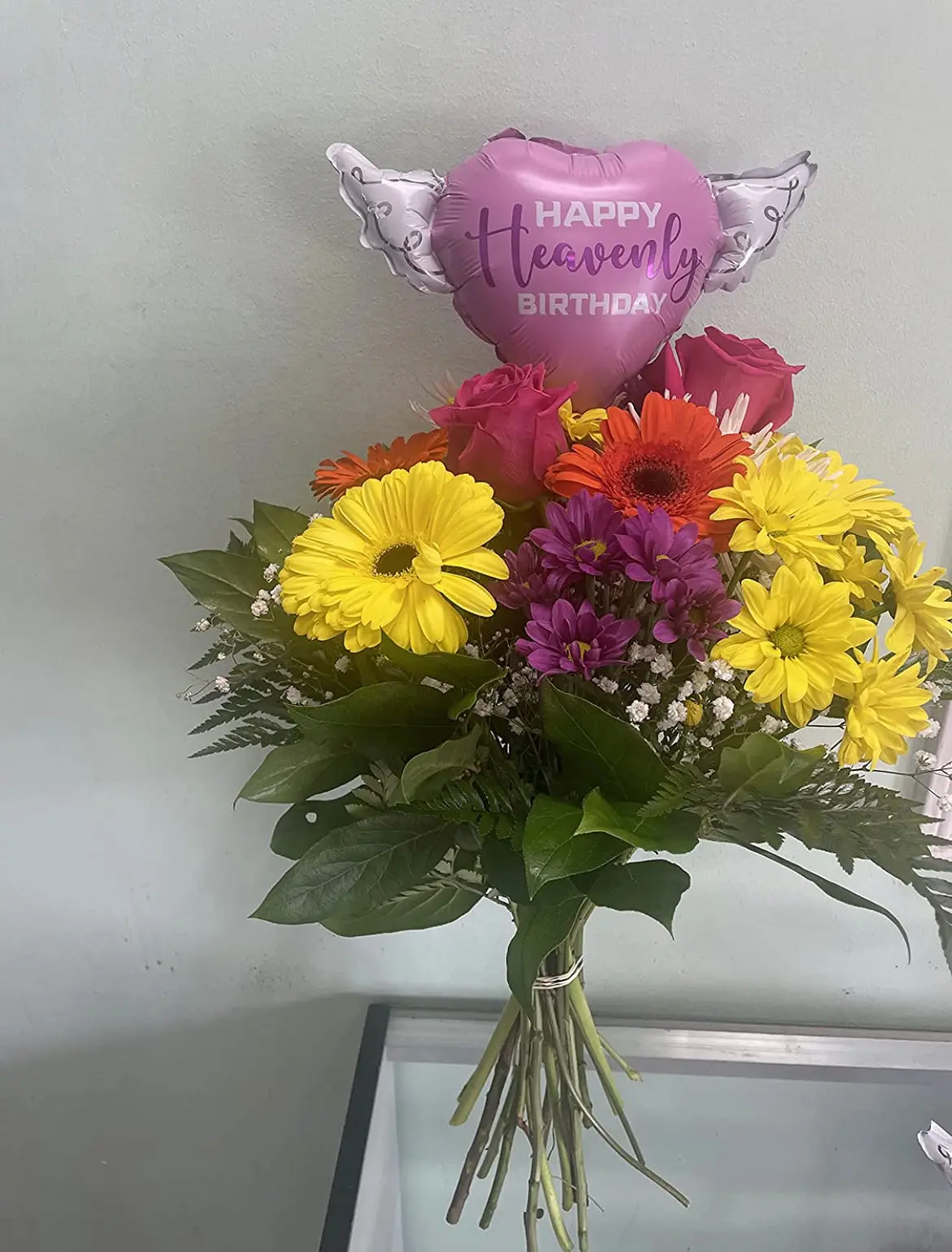 Whether you are hosting an indoor celebration of life birthday gathering and want a stunning floating centerpiece alongside a graveside tribute, visiting the cemetery on a heavenly birthday and wanting a coordinated display that honors your loved one with maximum beauty and maximum love, creating a complete home remembrance space for a heavenly birthday, or simply wanting the most complete and versatile heavenly birthday tribute available — this Happy Heavenly Birthday Memorial Balloon Set with 17" and Balloon on a Stick with Angel Wings is the perfect combination of floating love and graveside devotion.