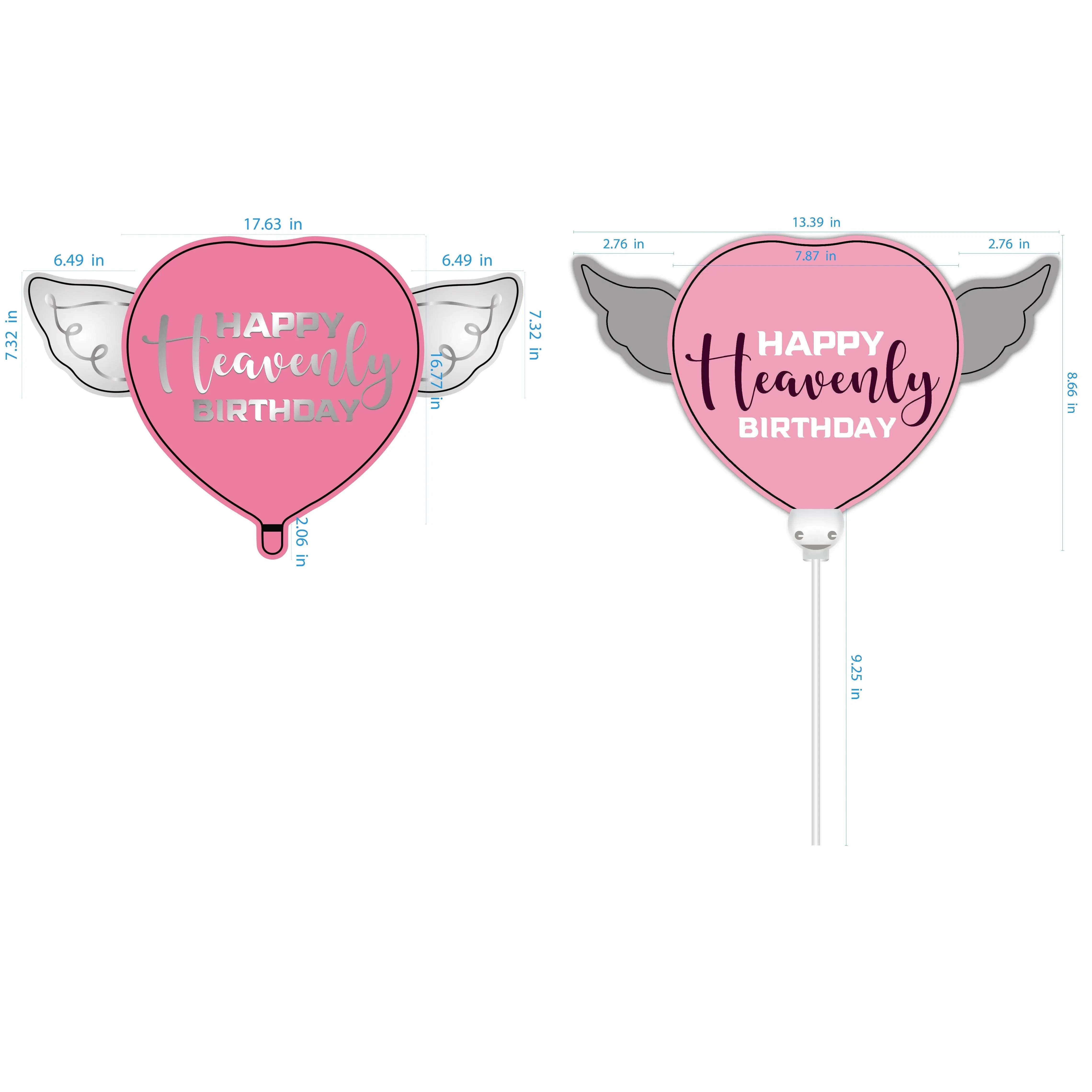 Happy Heavenly Birthday Memorial Balloon Set – Pink 17" & Balloon on a Stick with Angel Wings Graveside Tribute