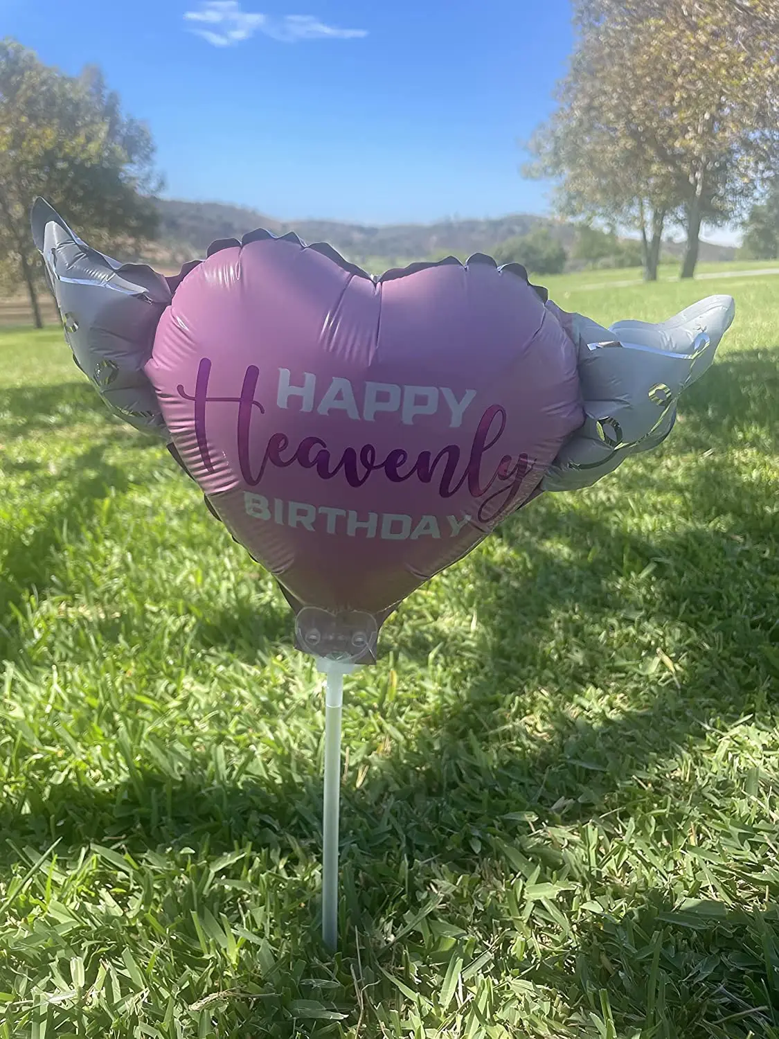 Each balloon arrives pre-mounted on a display stick for effortless placement directly into the ground at a graveside, headstone, or grave marker. No helium needed — simply inflate with air, clip onto the display stick, and press directly into the soil. Made in the USA from the highest quality durable aluminum foil and built to withstand outdoor conditions — lightweight, long-lasting, and easy to display for a beautiful and lasting heavenly birthday tribute.