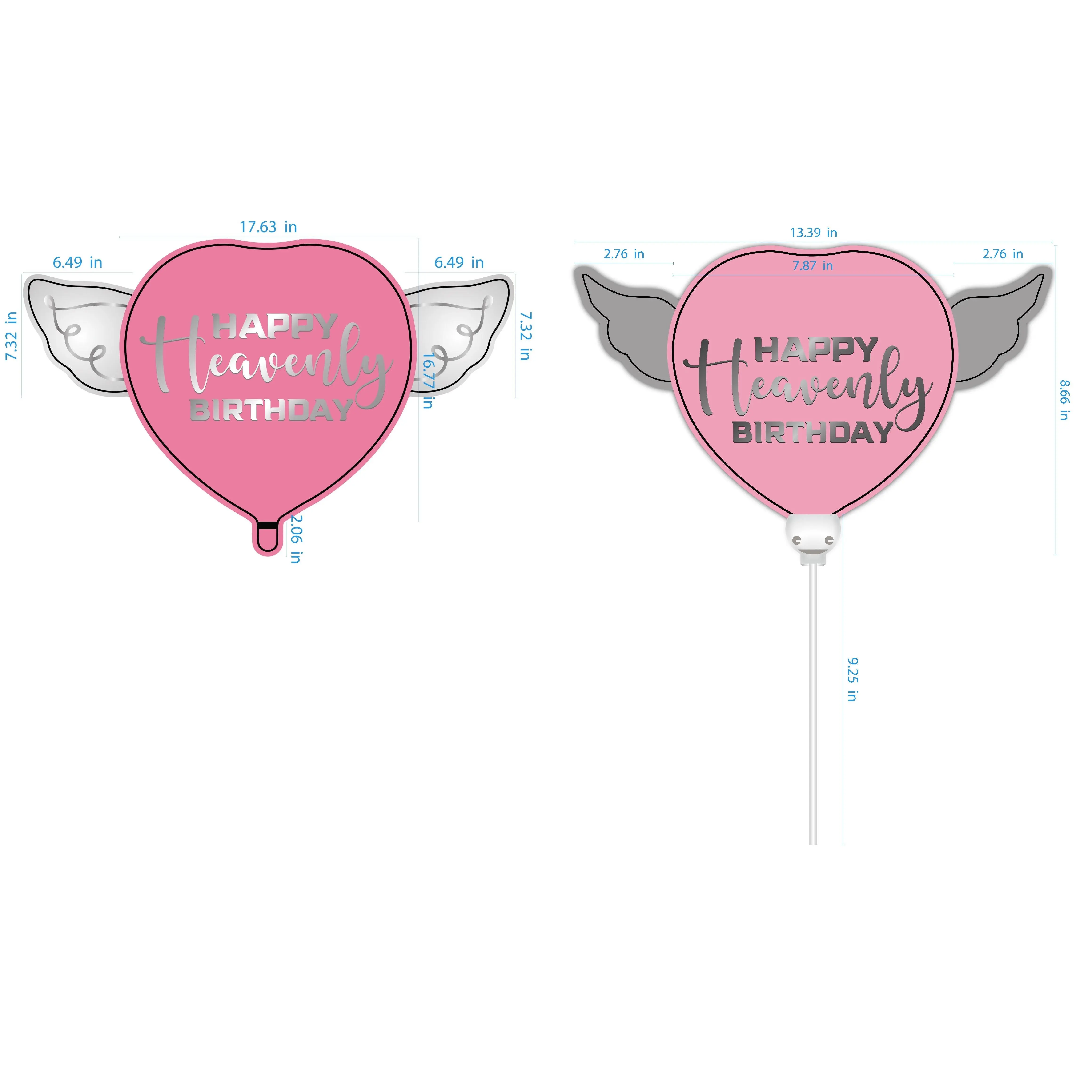 Whether you are hosting an indoor celebration of life birthday gathering and want an elegant floating silver script centerpiece alongside a classic graveside tribute, visiting the cemetery on a heavenly birthday and wanting a refined and coordinated display that honors your loved one with maximum elegance and maximum love, creating a complete home remembrance space for a heavenly birthday, or wanting the most classic and timeless heavenly birthday tribute available in the Heavenly Balloons collection — this Happy Heavenly Birthday Memorial Balloon Set Pink Silver Script with 17" and Balloon on a Stick with Angel Wings is the perfect combination of floating elegance and graveside devotion.