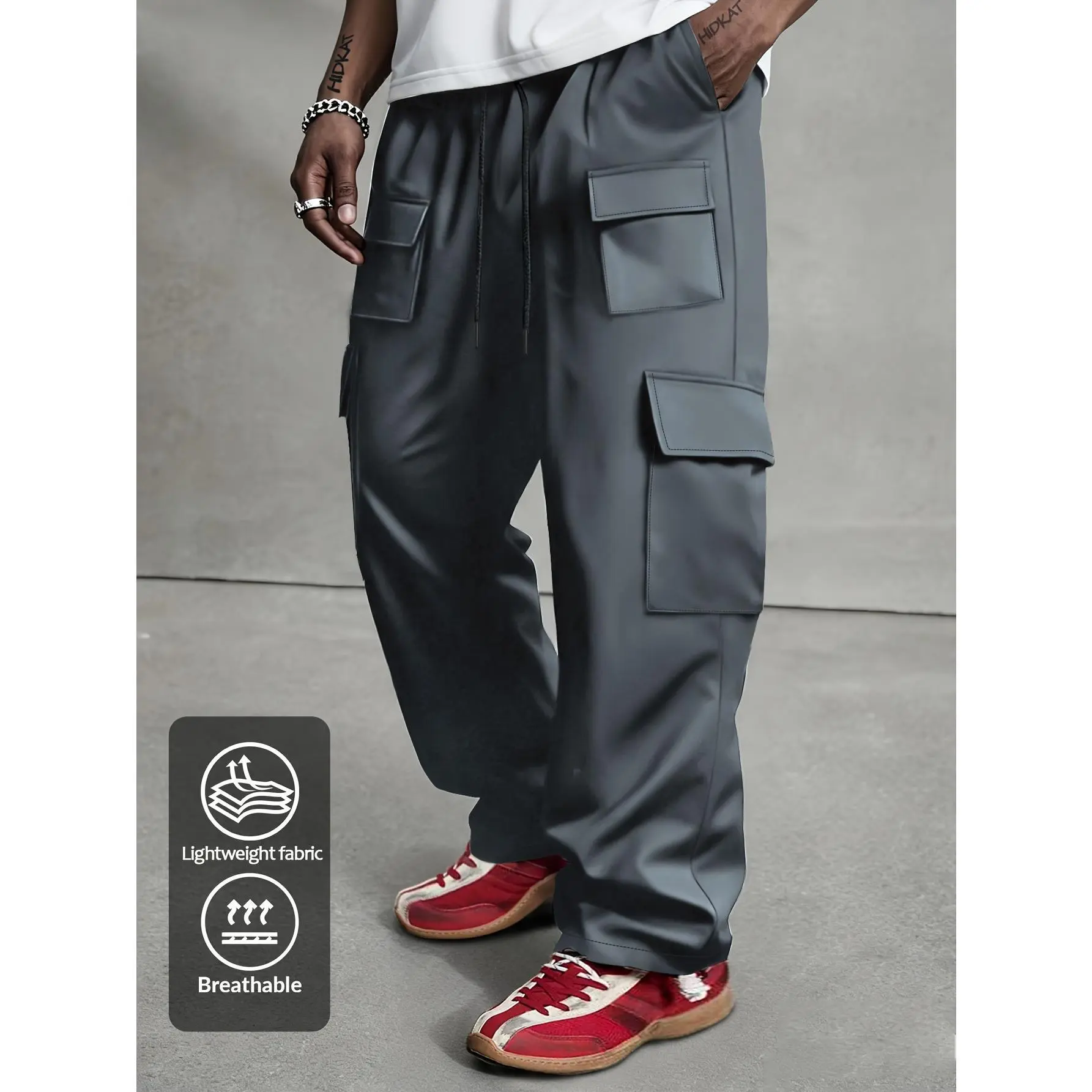 Elevate your everyday wardrobe with these men's cargo pants—perfectly blending practical storage, lightweight breathability, and a comfortable loose fit for work, errands, or hanging out with friends.