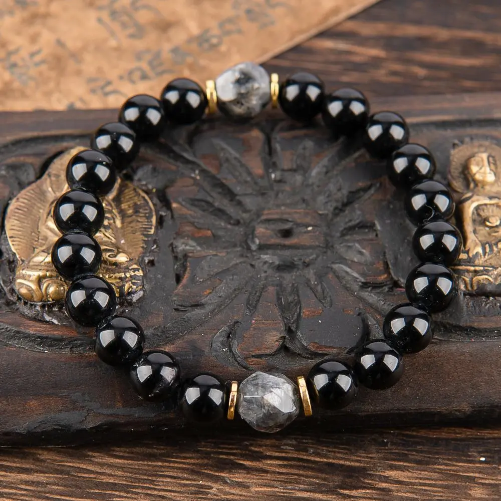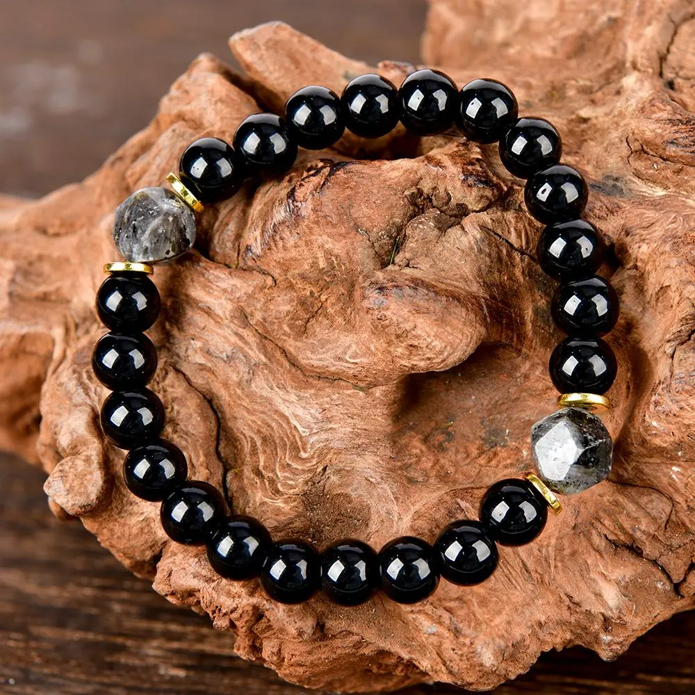 ARPURRAINA Obsidian & Black Tourmaline Bracelet – Black Grounding Stone for Manifestation & Protection, Healing Crystal Beaded Jewelry for Men Women, Perfect Christmas Gift for Mom Dad Valentine Birthday