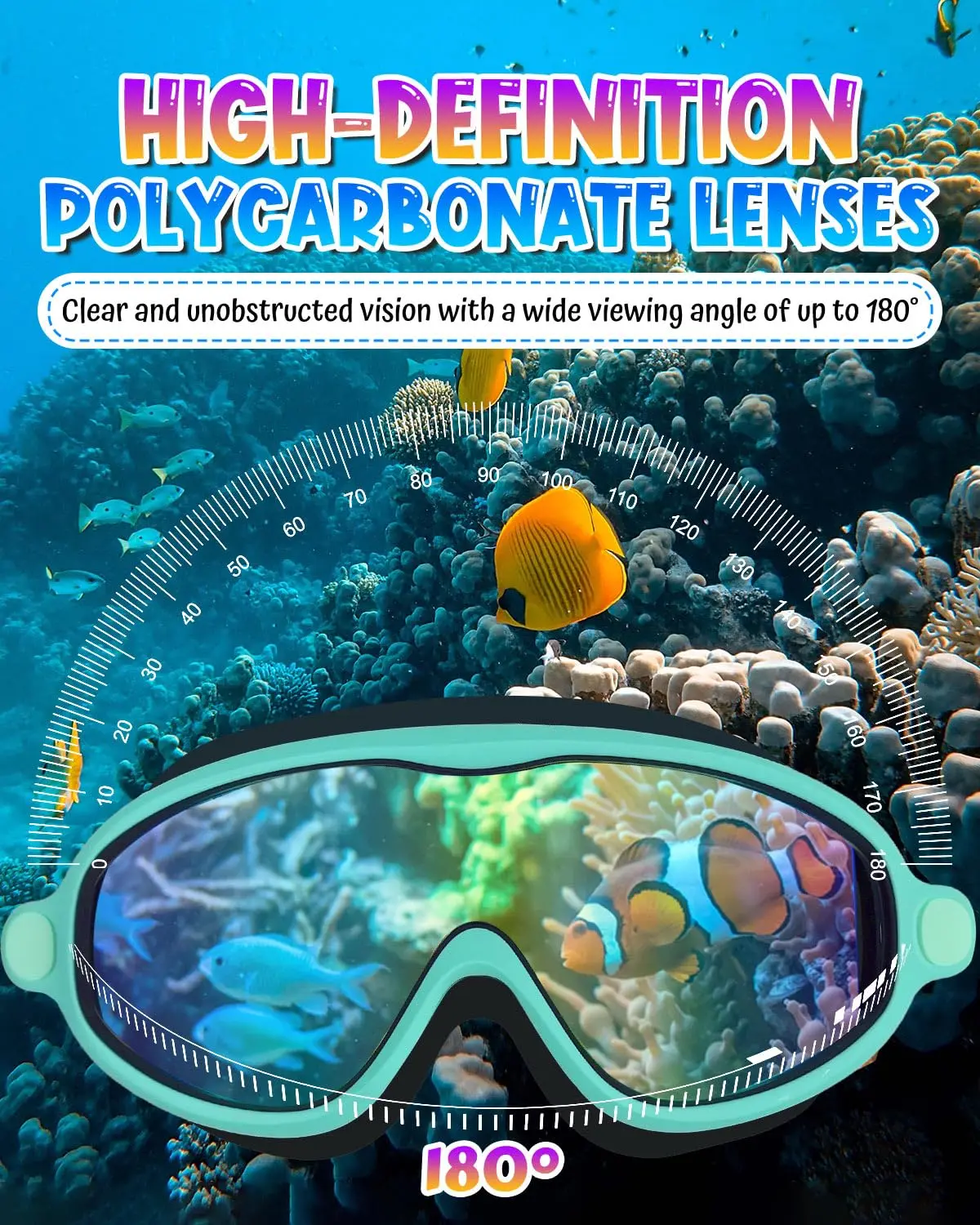 ·【Anti-Fog & Leakproof Design】 Specifically crafted to meet kids’ needs, our toddler swim goggles feature cutting-edge technology. The inner lenses, coated with the latest anti-fog treatment, ensure clear and distortion-free underwater vision, enabling unobstructed exploration. Combined with high-quality silicone seals, these kid goggles provide a leakproof experience, letting your little swimmers fully immerse in the water without distractions or discomfort.