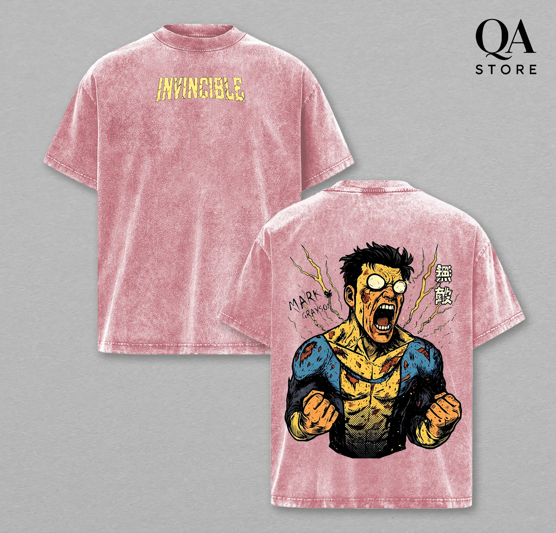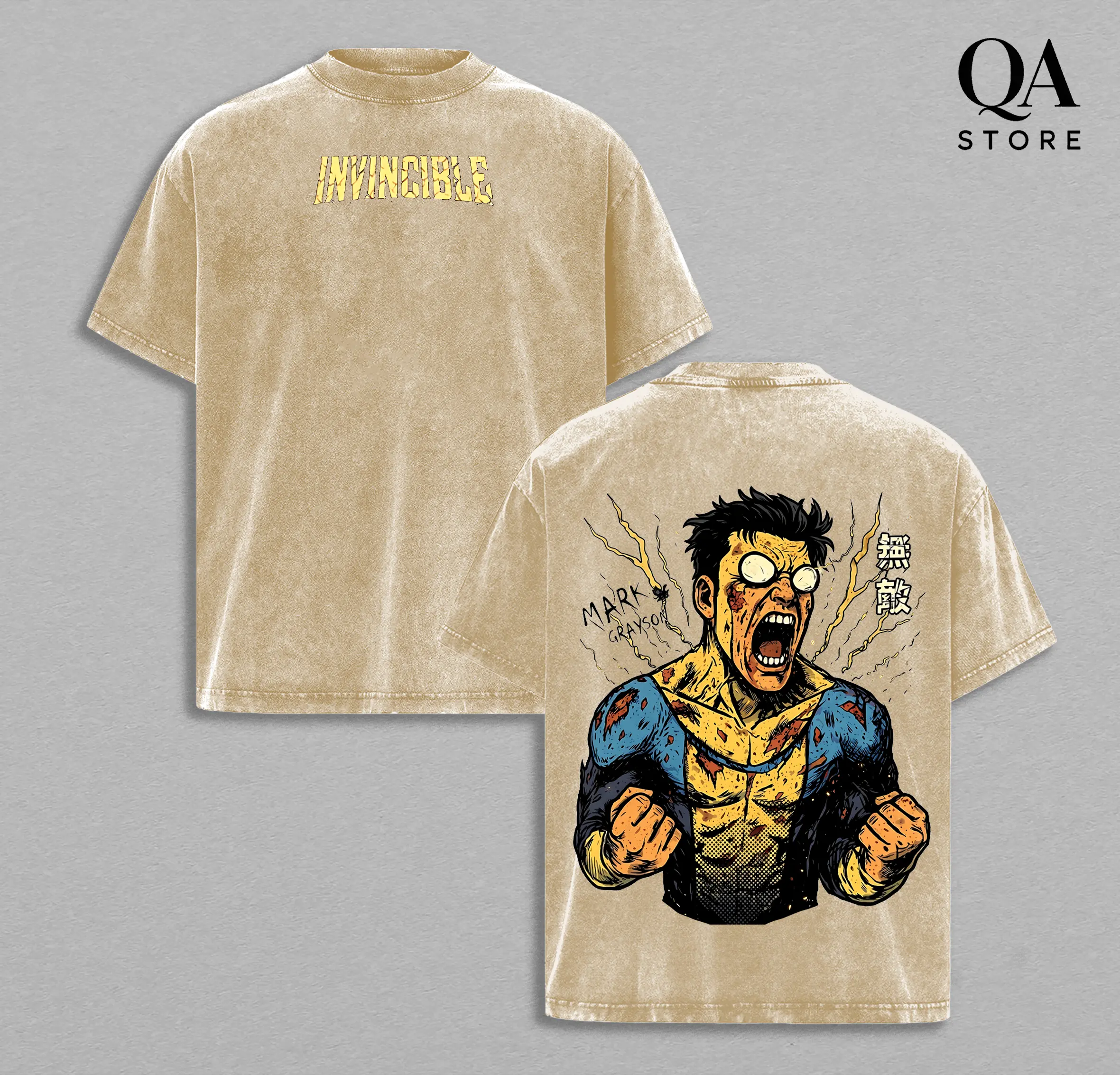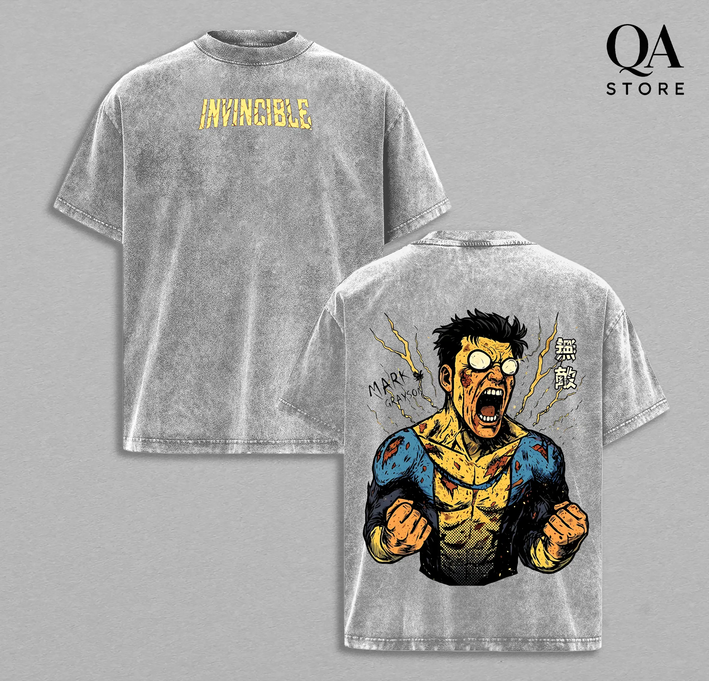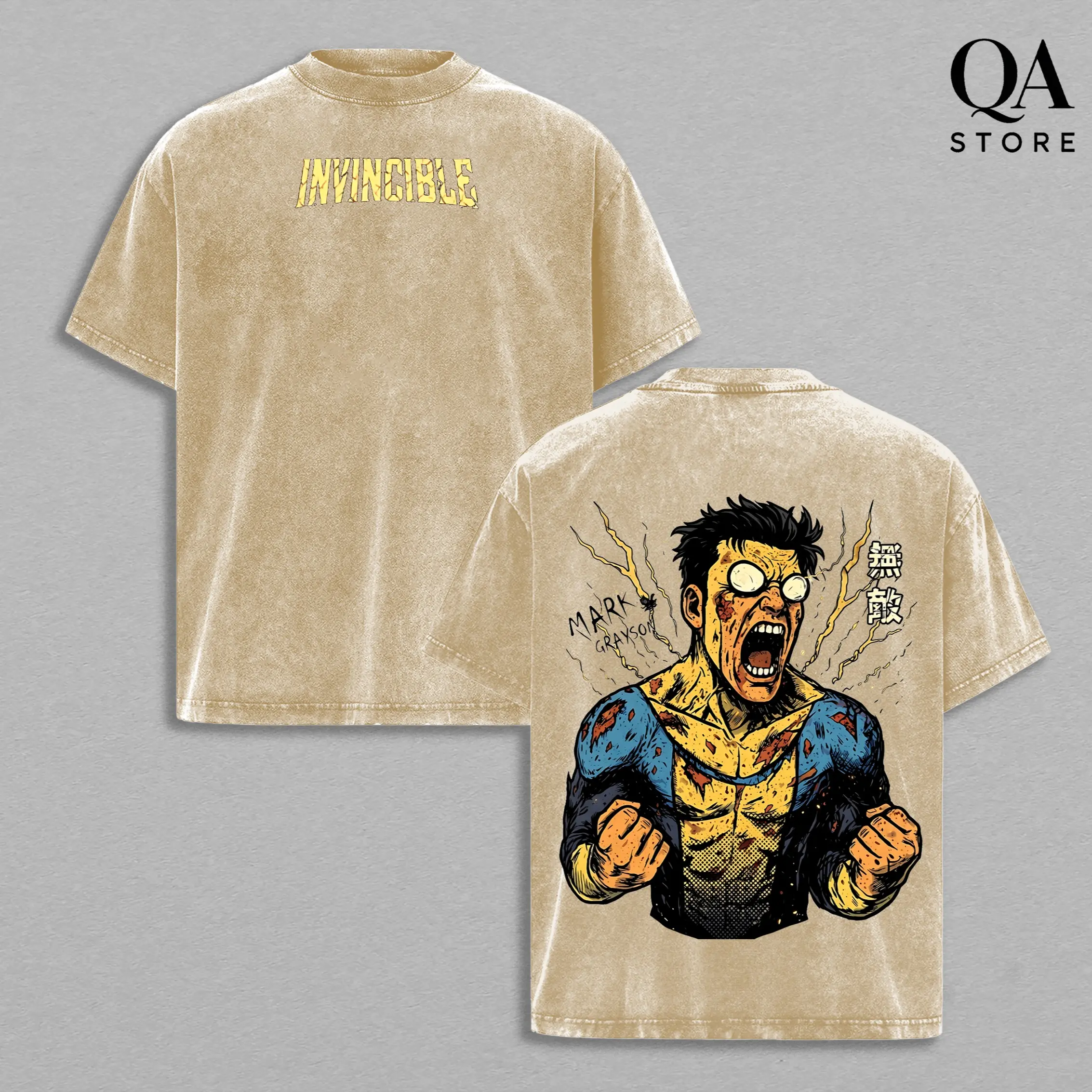Mark Grayson T-shirt Invincible Vintage Washed Graphic Tee Oversized Heavyweight Unisex Tee High-Quality Cotton Fabric Mark Grayson Lightning Graphic Back Print Bloodied Fierce Anime Merch Streetwear Gift For Fans