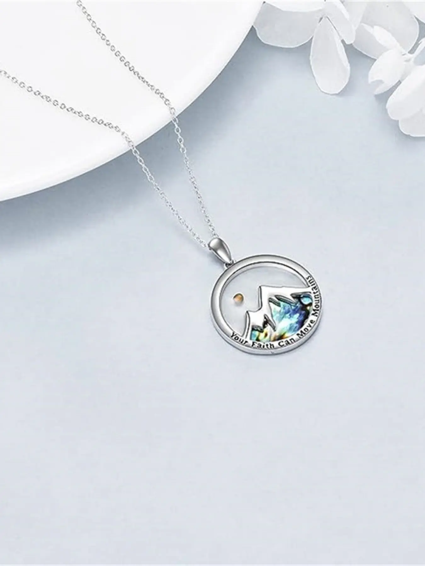 Silver Color Mountain Pendant Necklace, Inspirational Quote Jewelry, Unisex, Daily Wear & Gift, Elegant Alloy Chain