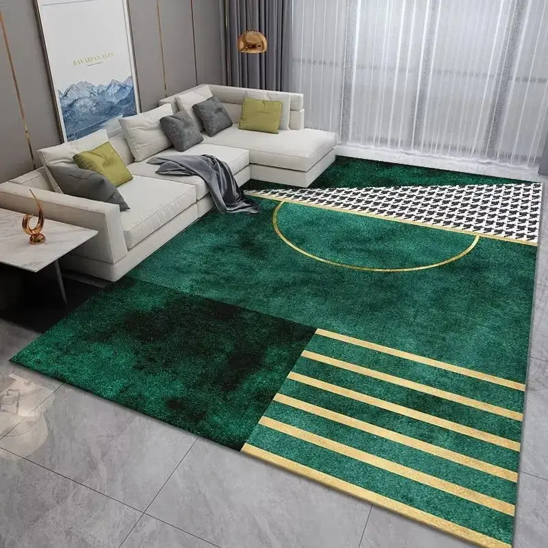 Luxury Emerald Green Gold Geometric Marble Flannel Area Rug - Modern Abstract Line Pattern Soft Mat for Living Room, Non-Slip Home Decor#EmeraldGreenRug #GoldGeometricMat #MarbleAbstractDecor #ModernCarpet #NonSlipFlannelRug