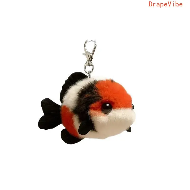 Lucky Koi Fish Plush Keychain Cute Heart-Shaped Carp Pendant With Round Ring Charm Soft Fish Bag Accessory For Gifting