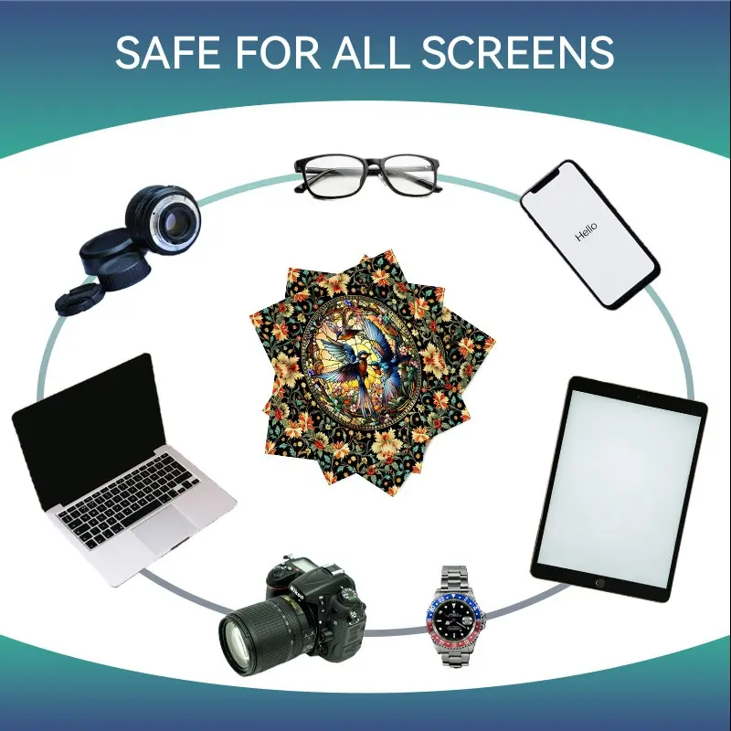 1/3/6/14pcs Stained - Glass Birds Cleaning Cloth, Suitable for Camera & Eyeglass Lenses, Single - Sided, Multiple Specifications Available, Vibrant Floral Design, Ideal for Home & Photography Use, Efficient Lens Cleaning