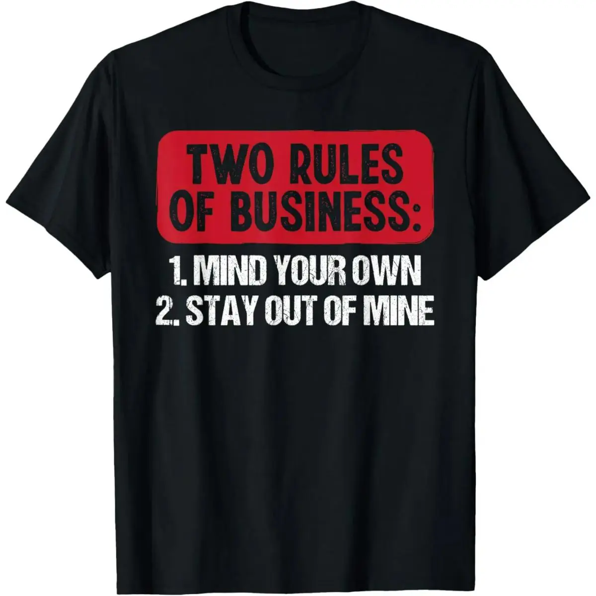 Crew Neck Cotton Polyester Graphic T-Shirt, "Two Rules Of Business Mind Your Own Stay Out Of Mine" Funny Slogan Printed Tee, y2k Fashion Casual Streetwear Humor Shirt, Comfortable & Breathable Material, Everyday Outfit, Gifts, SuperYi