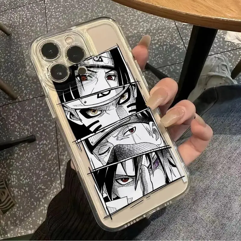 Japan Anime Sasuke Sharingan Itachi Anime Back Phone Case for iPhone 11 12 13 14 15 16 17 Pro Max Plus Kakashi Shockproof Cover