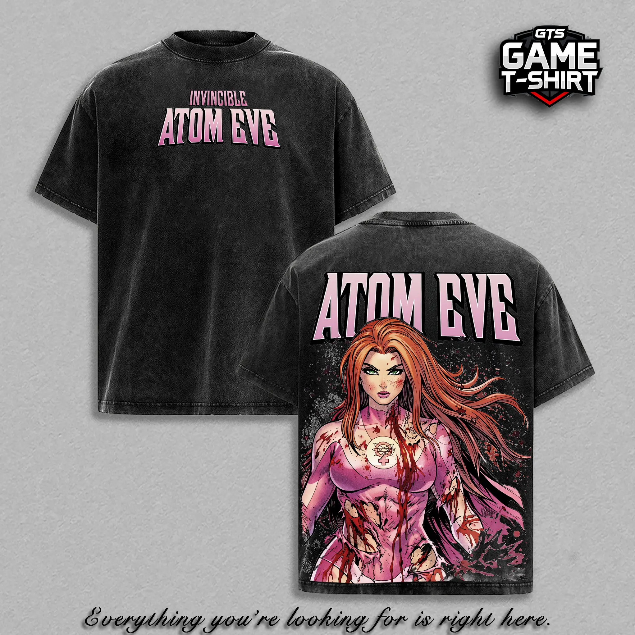 5. Invincible Atom Eve Graphic Tee Vintage Washed Oversized Heavyweight T Shirt | Female Superhero Comic Streetwear Shirt | Large Back Print Graphic Tee | Heavy Cotton Unisex | Gym Pump Cover Gamer Outfit | Gift For Invincible Fans