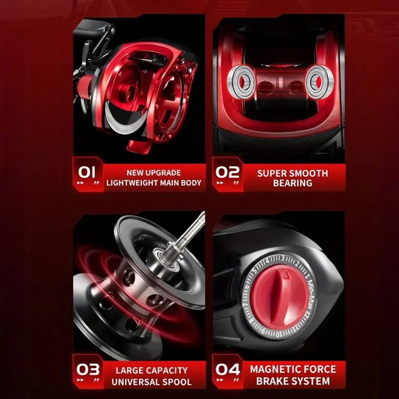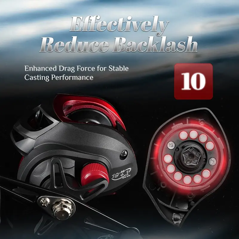 1. **Smooth & Reliable Performance**: Equipped with 10 high-quality magnetic bearings, this baitcasting reel delivers ultra-smooth operation with minimal friction for long, effortless casts every time.