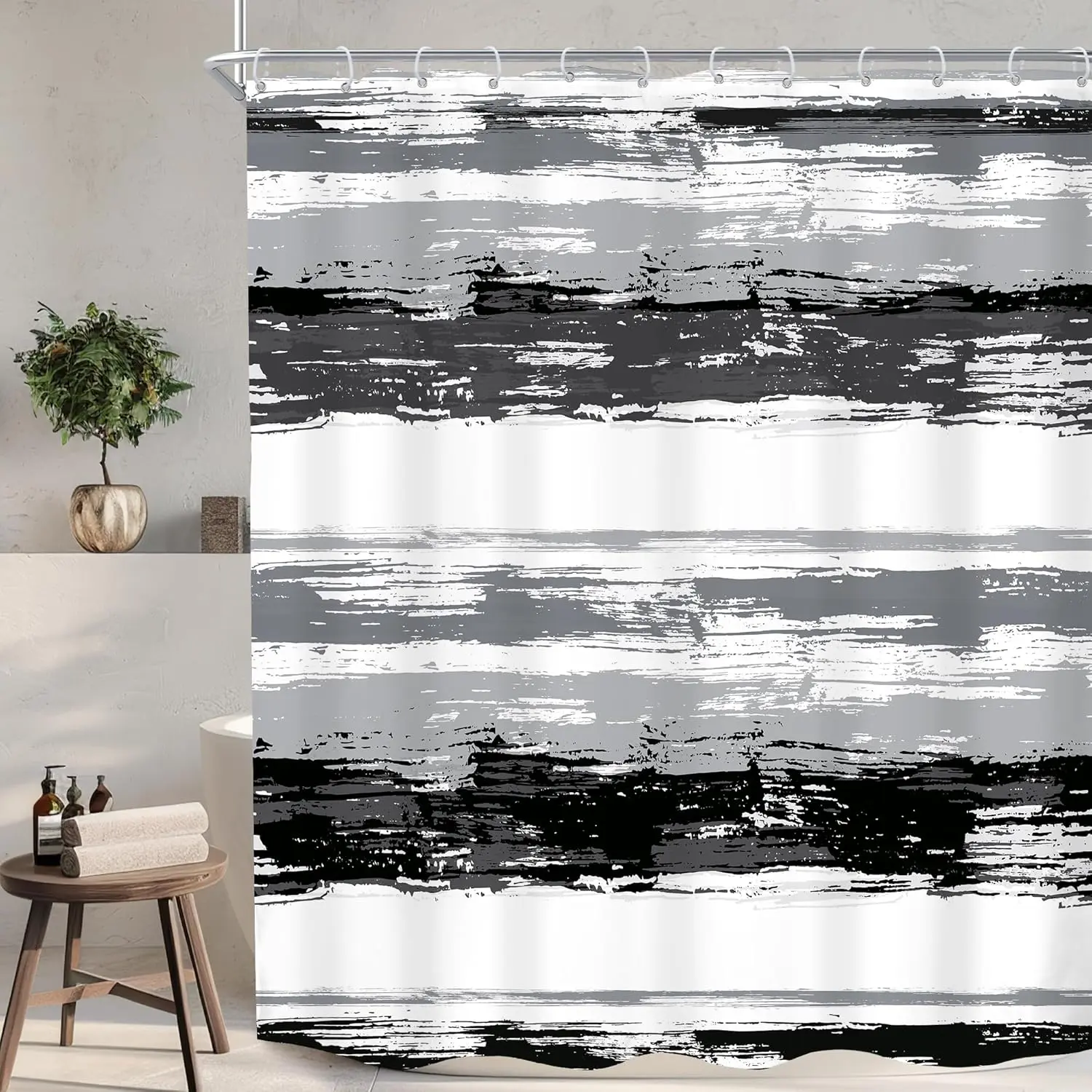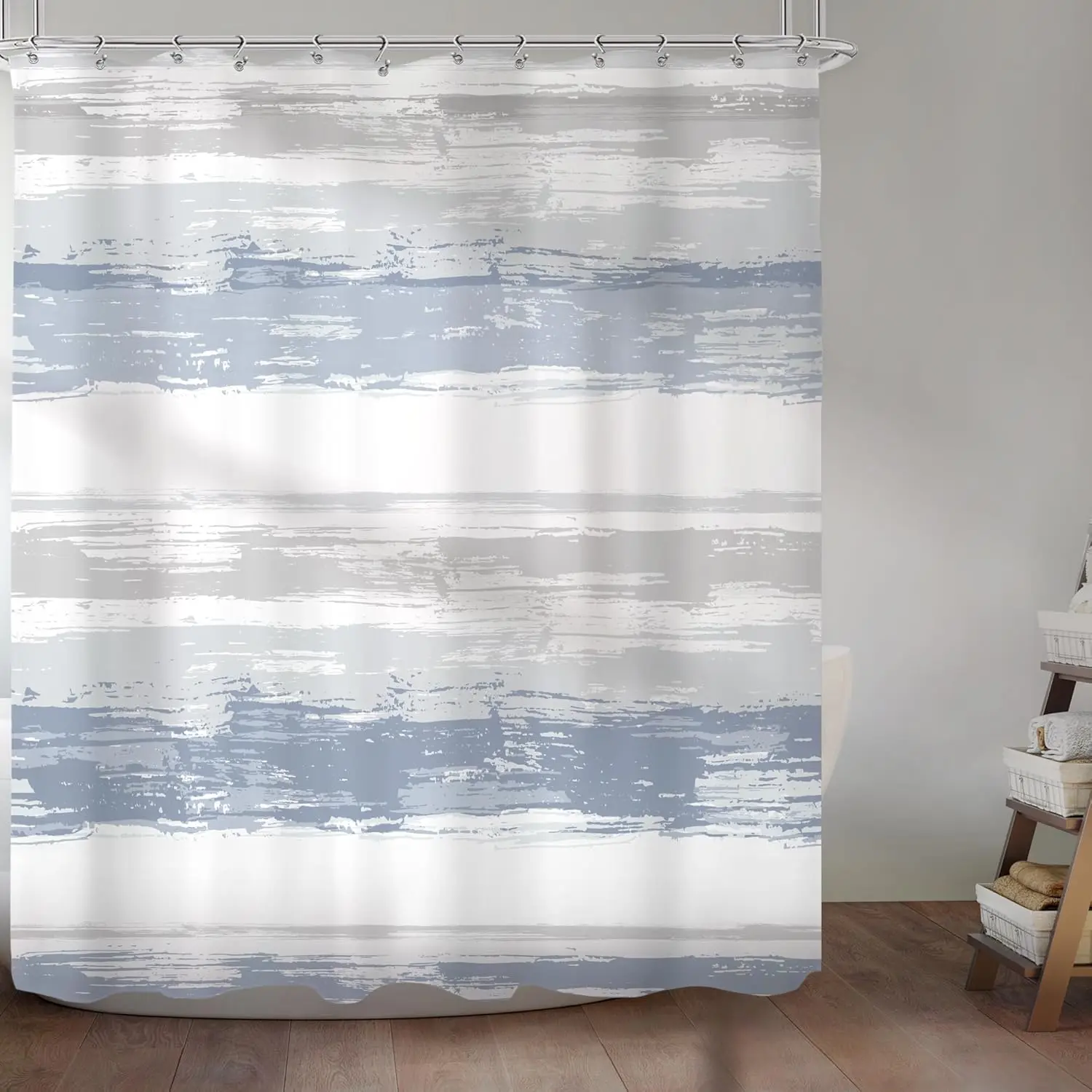 Abstract Blue Shower Curtain for Bathroom Decor 72Wx72H Modern White Grey Striped Aesthetic Minimalist Geometric Simple Neutral Watercolor Painting Fabric Waterproof Polyester 12 Pack Hooks