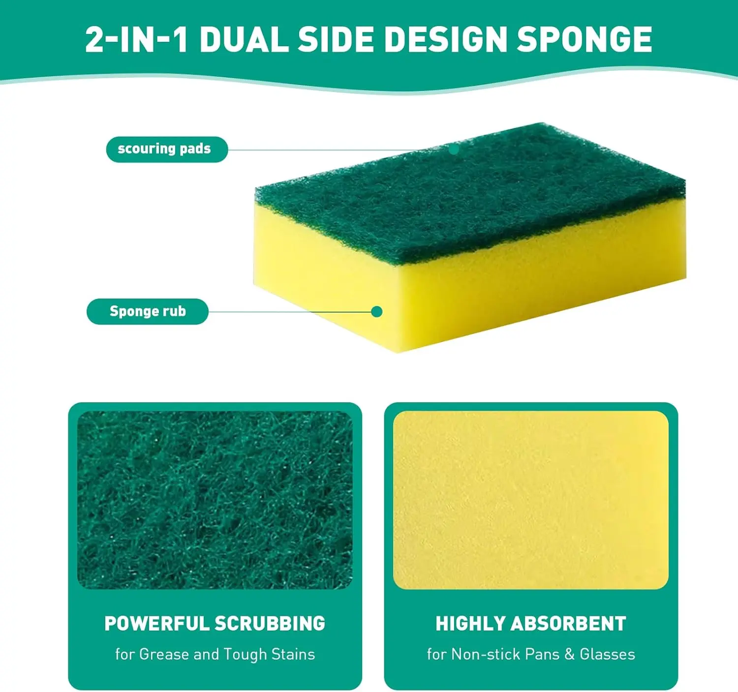 ·Heavy Duty Performance – Ideal for dishes, pots, pans, sinks, stovetops, and general kitchen cleaning.