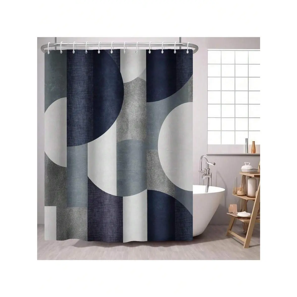 Shower Curtain With Hooks, 72x72 Inch, Abstract Modern Geometry Circles Bathroom Accessories