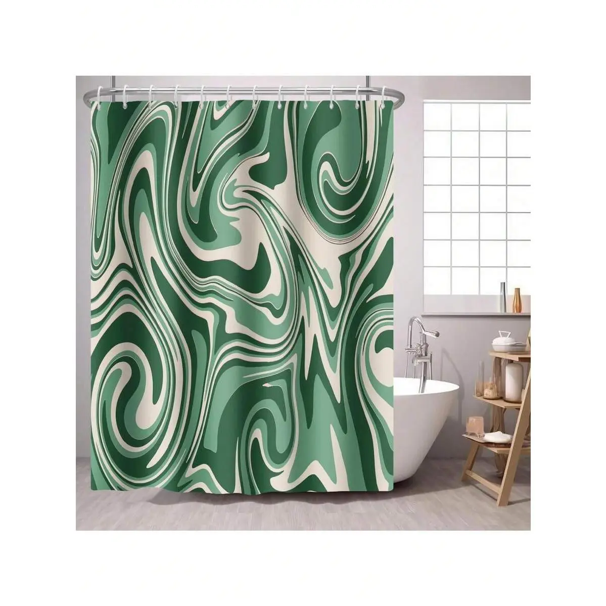 Glawry Green Boho Shower Curtain 72Wx72L Inches, Abstract Retro Mid Century Shower Curtains for Bathroom Decor,Minimalist Tropical Modern Shower Curtain Set Home Decor 12 Pack Hooks