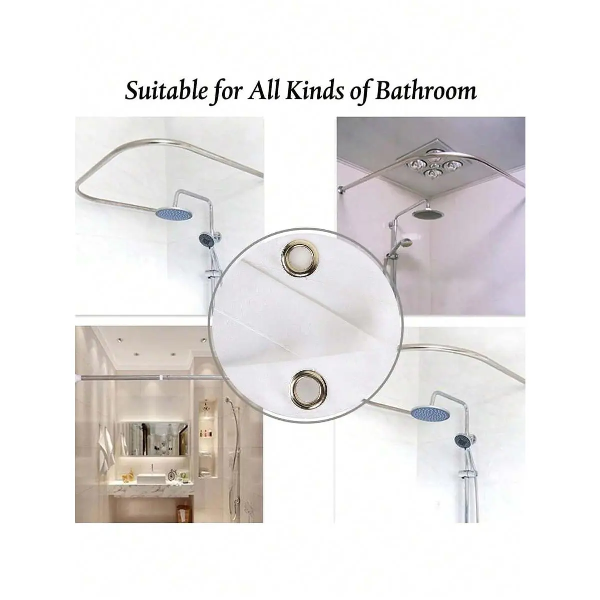 Features 12 stainless steel holes and is compatible with 12 C-shaped curtain hooks.