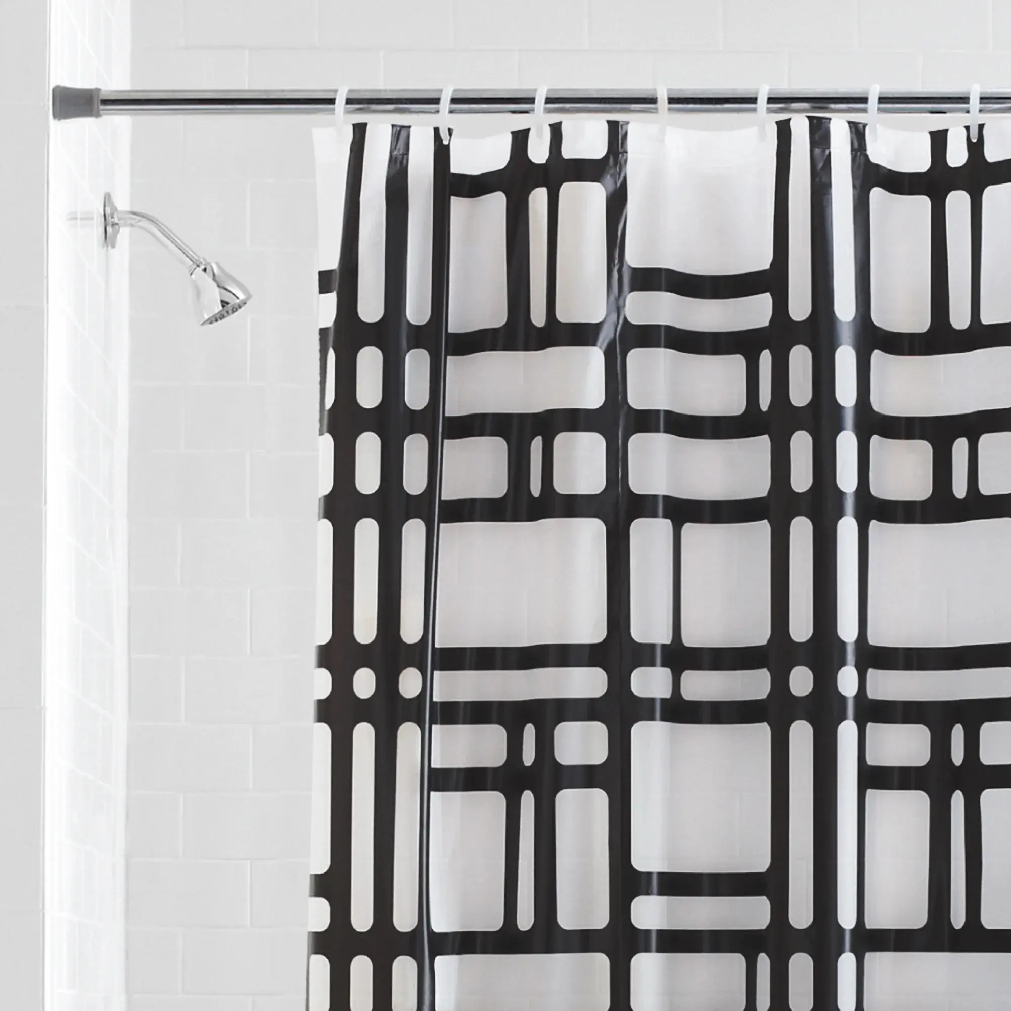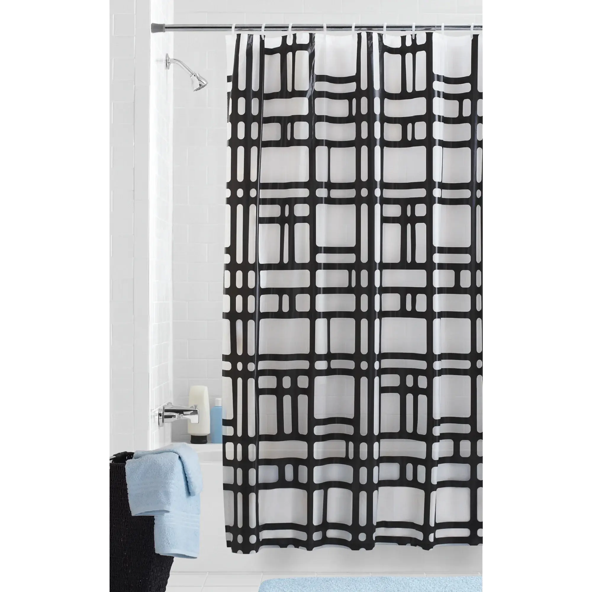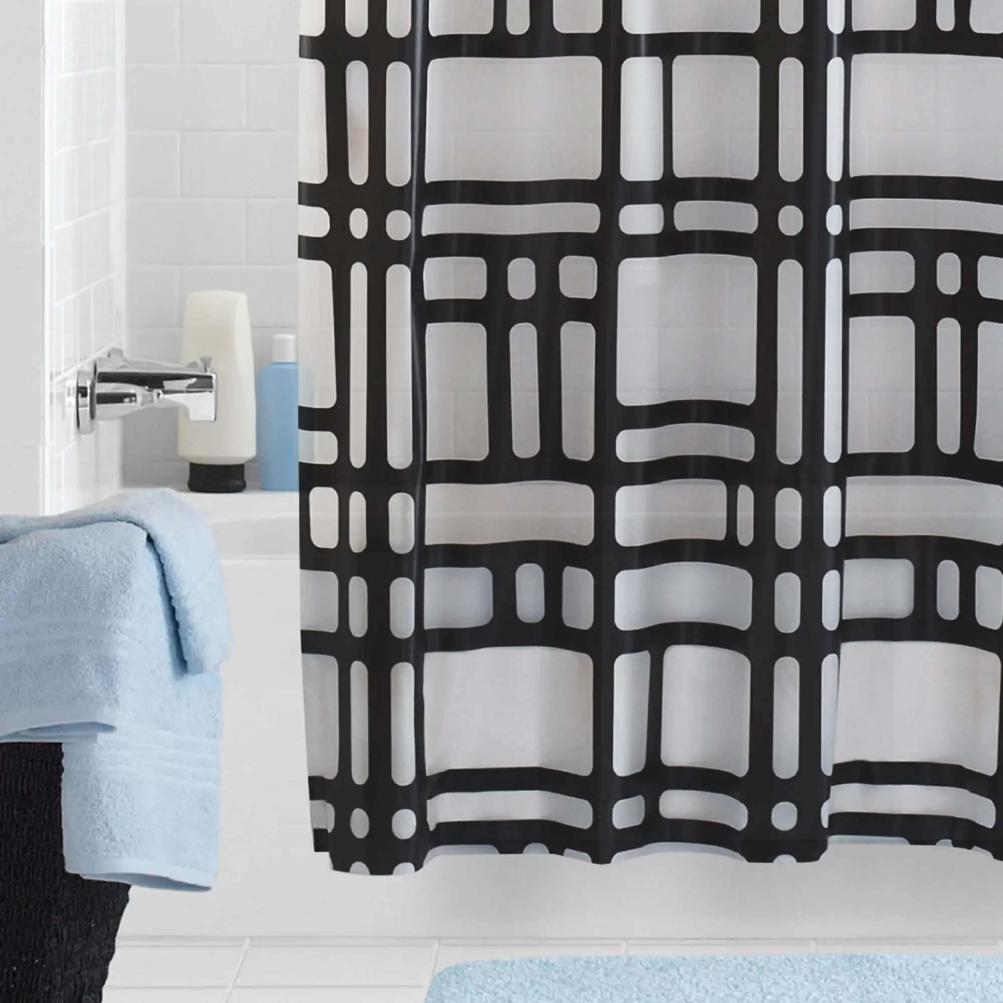 Mainstays Black PEVA Shower Curtain, 72" x 72", Elements Geometric Design, Frosted