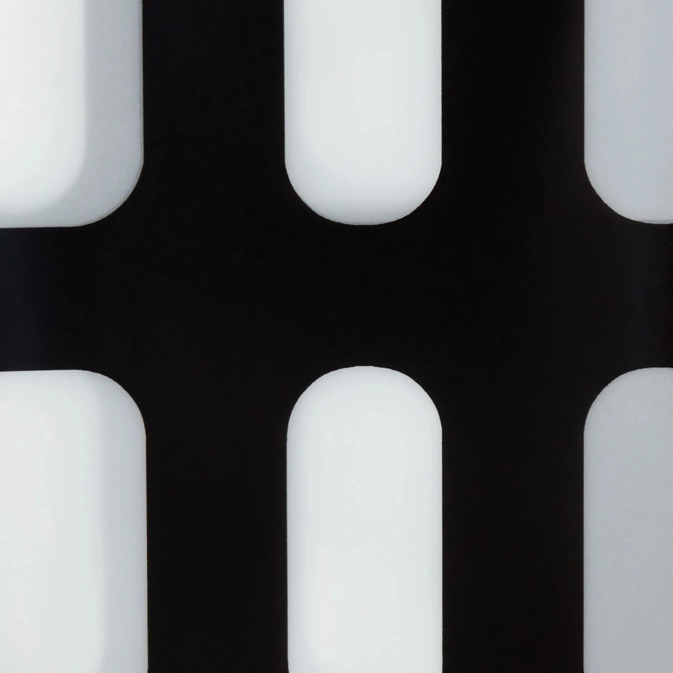 ·Features a geometric pattern in black on a semi-transparent frosted background