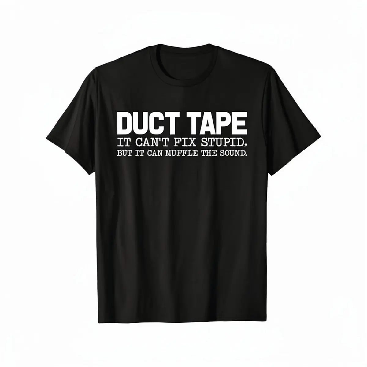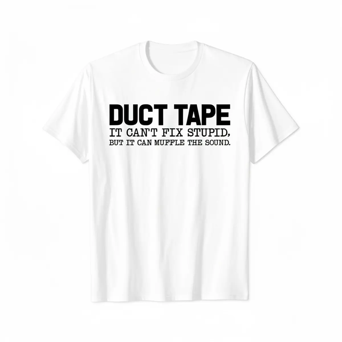 Crew Neck Cotton Polyester Graphic T-Shirt, "Duct Tape, It Can't Fix Stupid, But It Can Muffle The Sound" Funny Slogan Tee, y2k Fashion Casual Streetwear Humor Shirt, Comfortable & Breathable Material, Everyday Outfit, Gifts, SuperYi