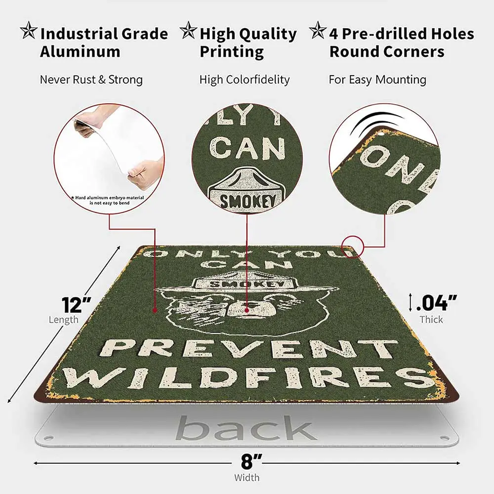 We prioritize what you need—durability + style! This timeless Smokey Bear metal sign has crisp, iconic artwork, a smooth vintage finish, and folded edges (no sharp corners!)—safe for cabins, campgrounds, and spaces with kids or pets. Eco-friendly, recyclable aluminum, so you can feel good about your purchase—TikTokers love a sustainable, meaningful outdoor decor pick!