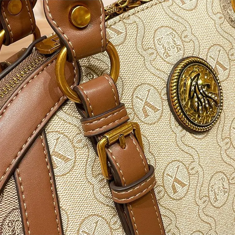 Vintage Monogram Dome Bag for Women Trendy Crossbody Top Handle Satchel