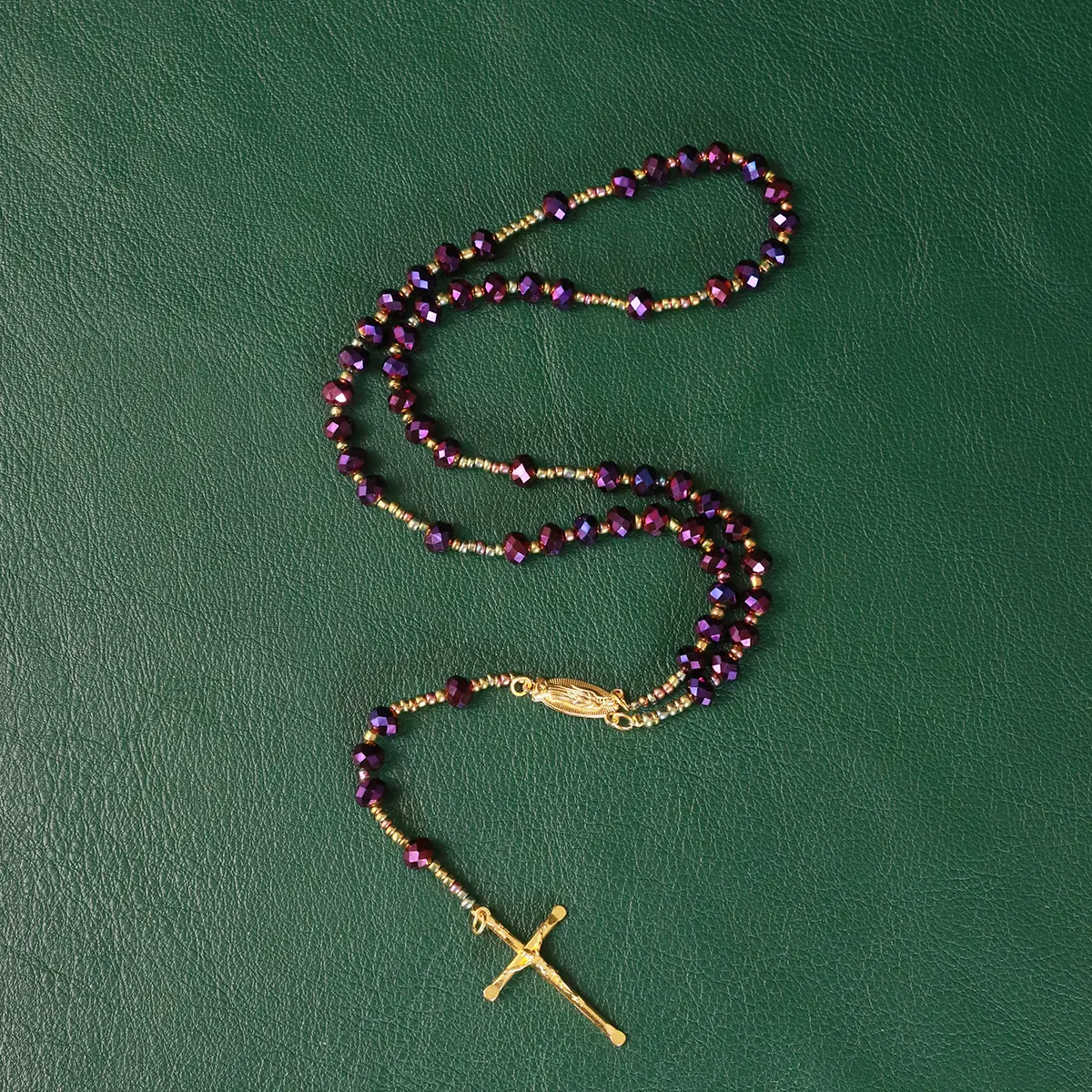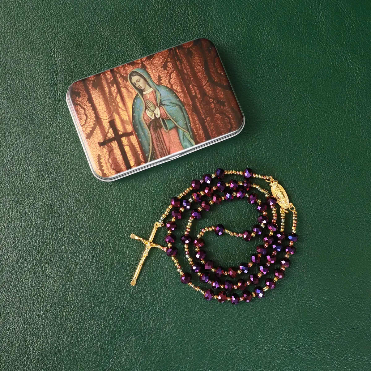 Catholic Rosary Purple Beads Necklace, with Crucifix Rosaries Communion Rosary Christian Gifts Catholic Gifts with a Gift Box And 18pcs Praying Cards