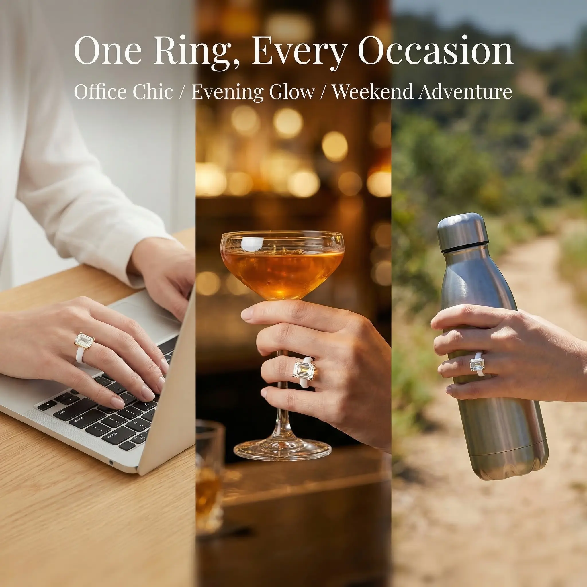 The lightweight silicone band feels smooth and flexible for everyday wear, while the clear zircon center stone delivers a luxurious diamond-like shine. Whether you're dressing up for a party, date night, vacation, or simply adding a chic touch to your daily outfit, this ring is a standout accessory.