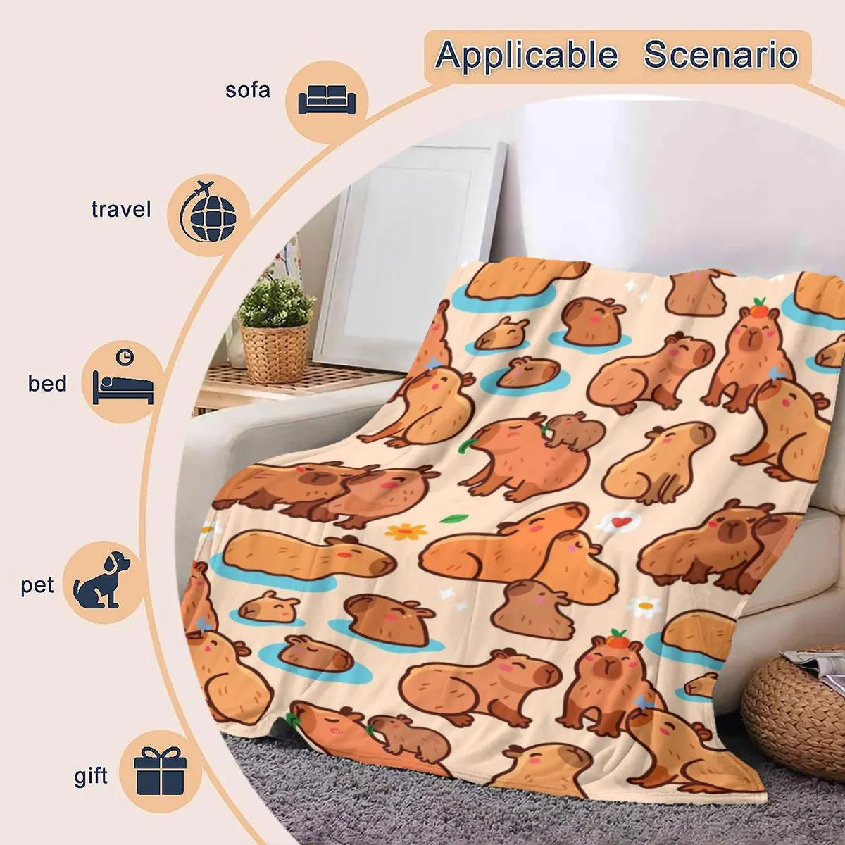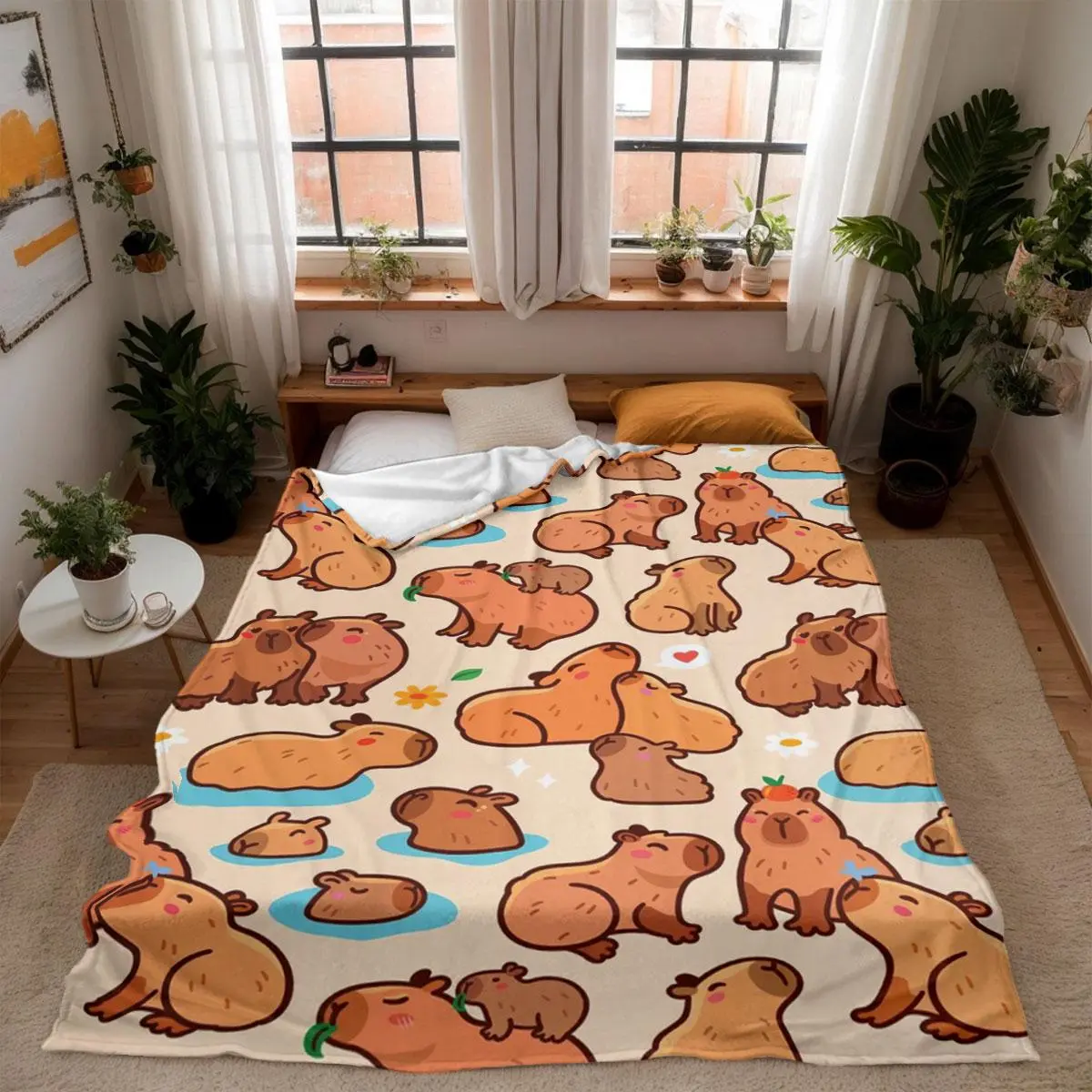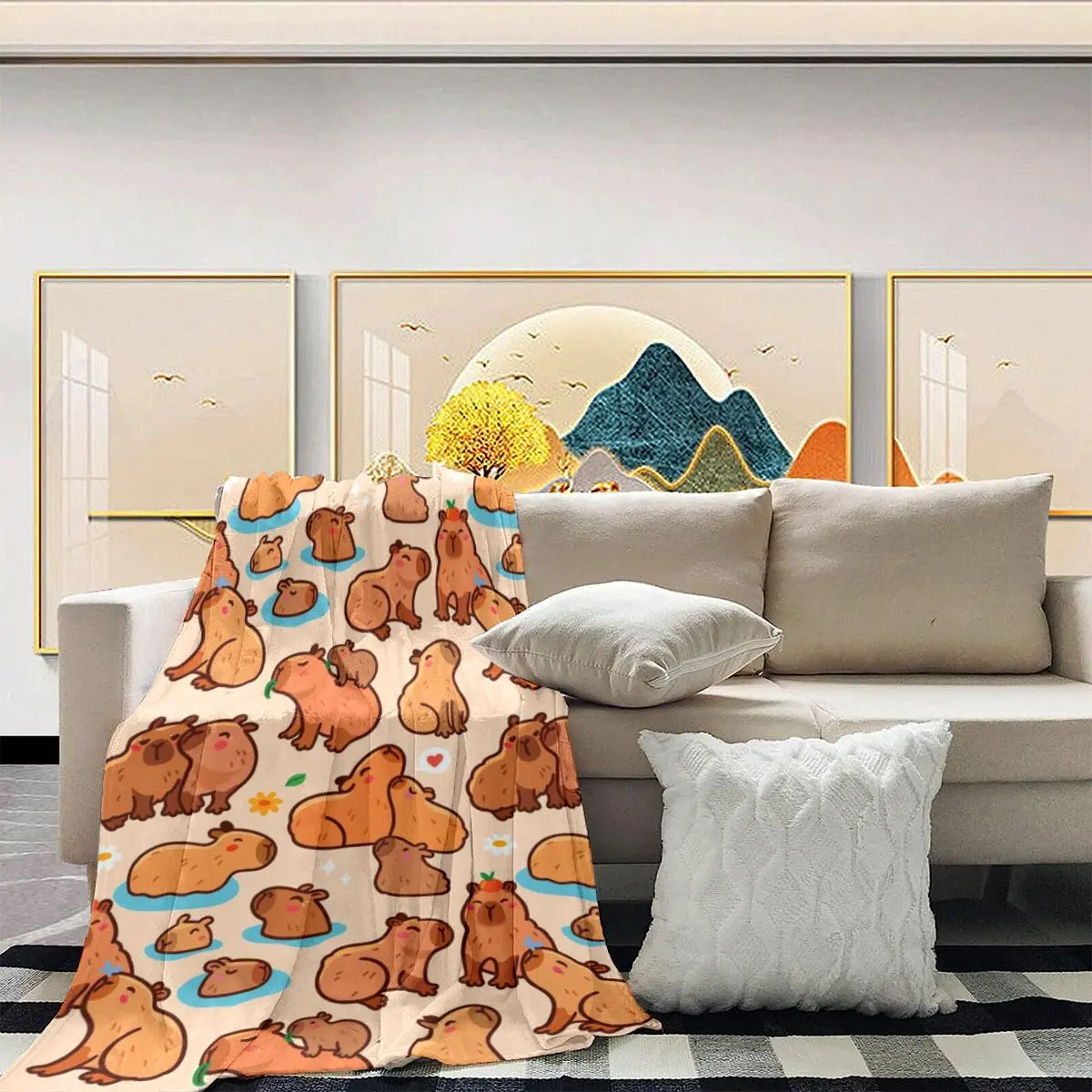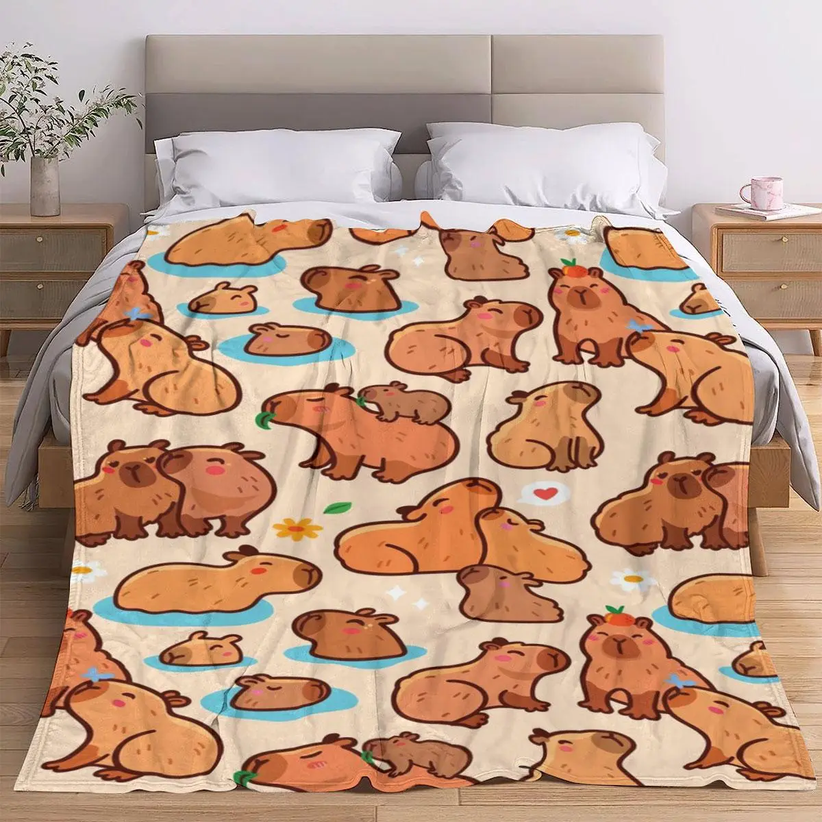 Cartoon Capybara Pattern Blanket, 1 Count Soft and Comfortable Air-conditioned Room Throw, Warm Nap Blanket for Home, Office, Outdoor Camping
