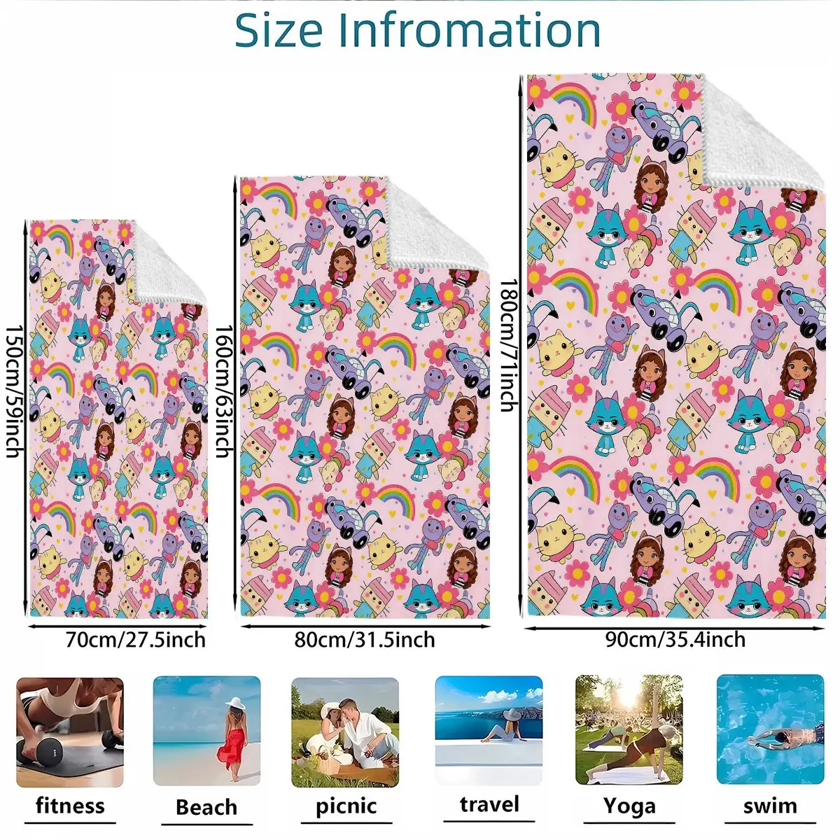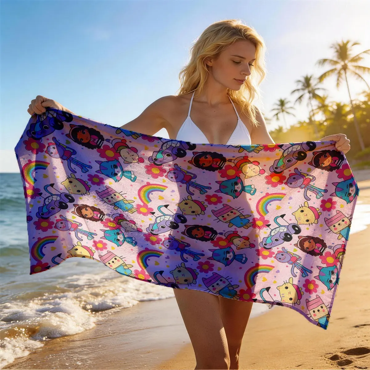 A Gabby's Dollhouse Cartoon Characters Rainbow All-over Printed Beach Towel - Oversized, Skin-friendly, Absorbent and Quick-drying, Perfect for Beach and Pool Leisure, Ideal for Summer Trips - Suitable for Seaside Vacations, Pool Parties and Outdoor Picni