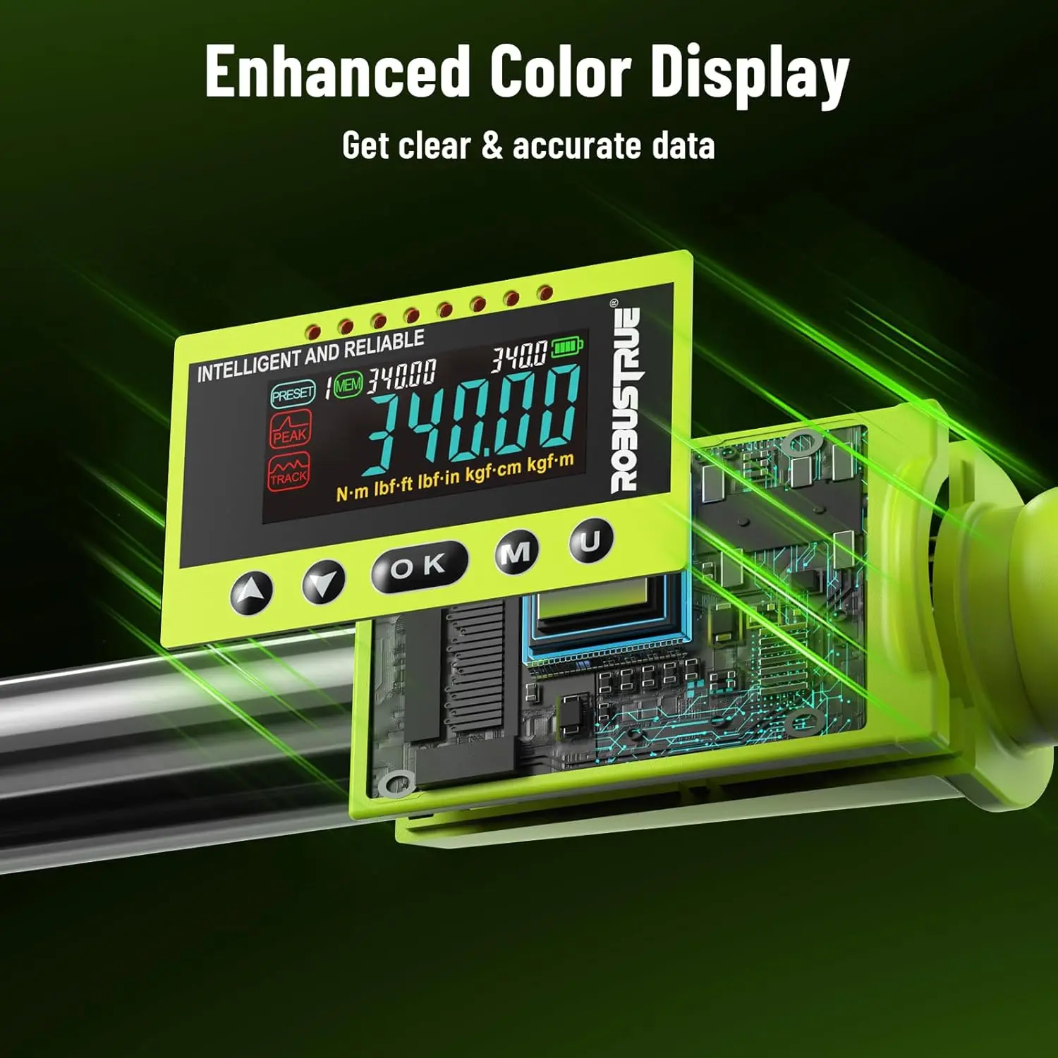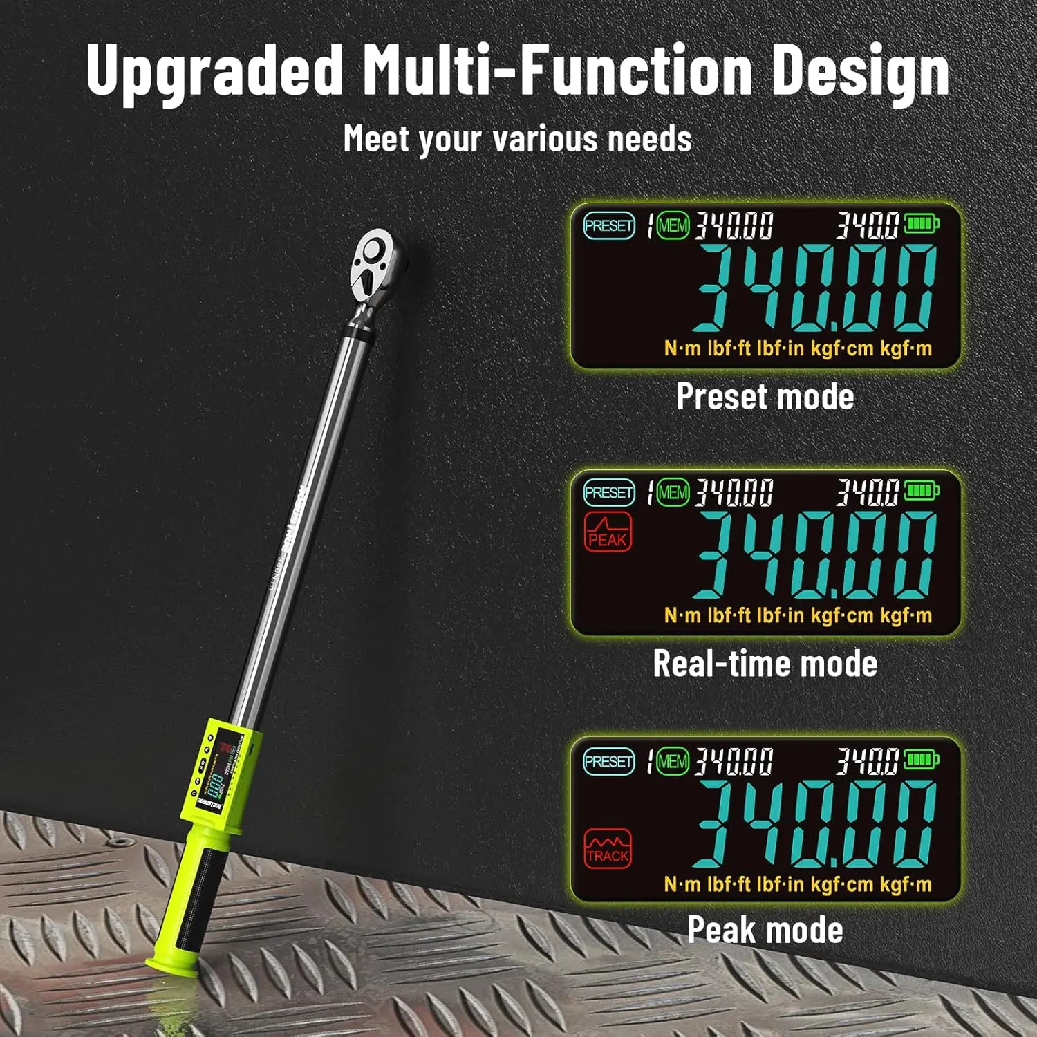 ·【Switch Between 5 Units】The torque wrench digital features five measurement modes: Nm, ft-lb, in-lb, Kgf-m, and Kgf-cm. Depending on your needs, you can easily switch between units for accurate readings.