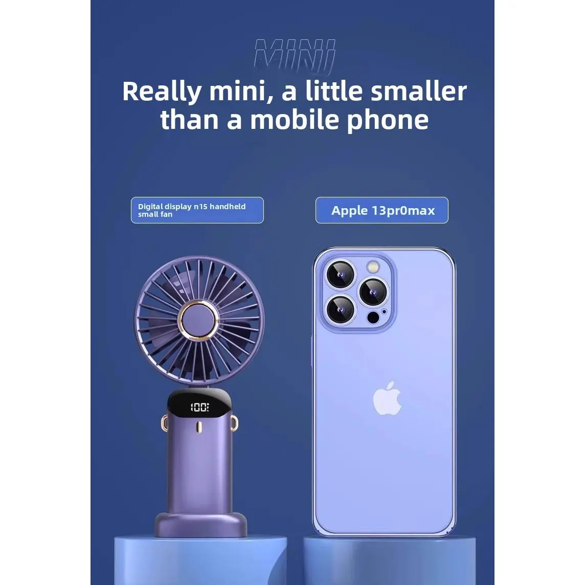 N15 handheld fan USB portable foldable rechargeable neck-hanging digital display desktop fan with long battery life and portable design
