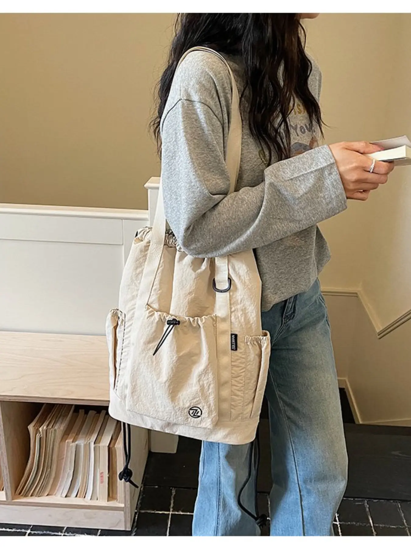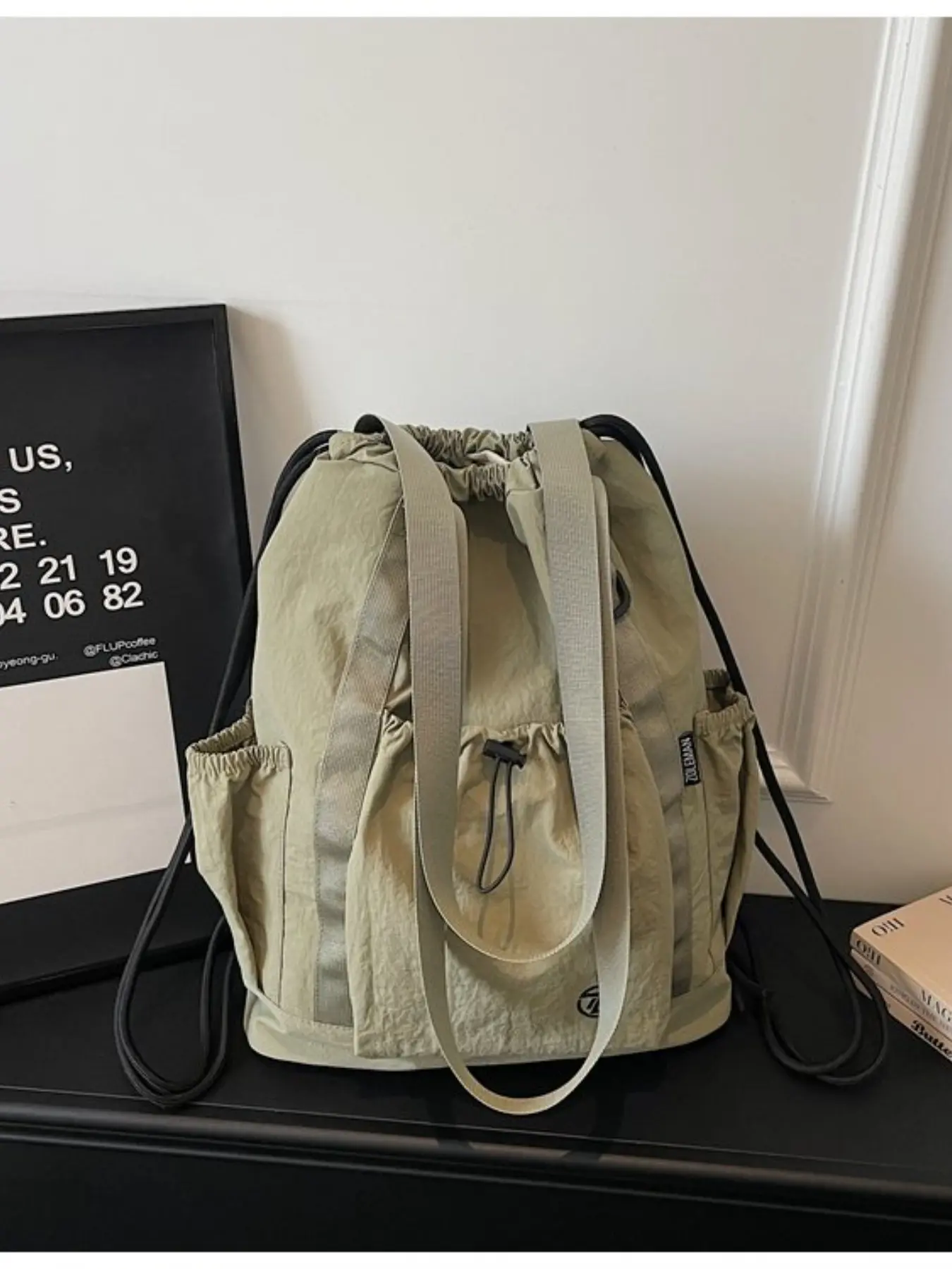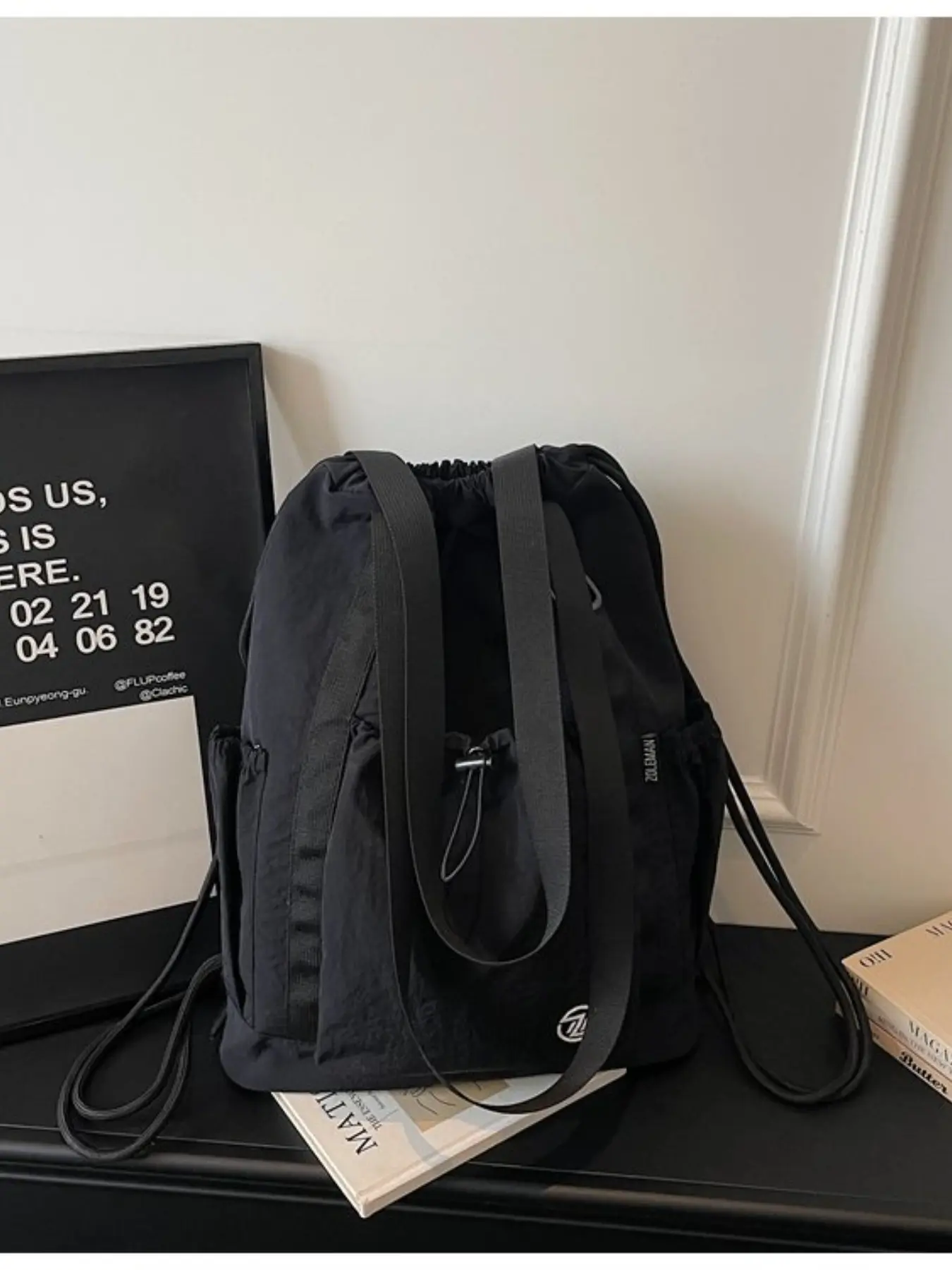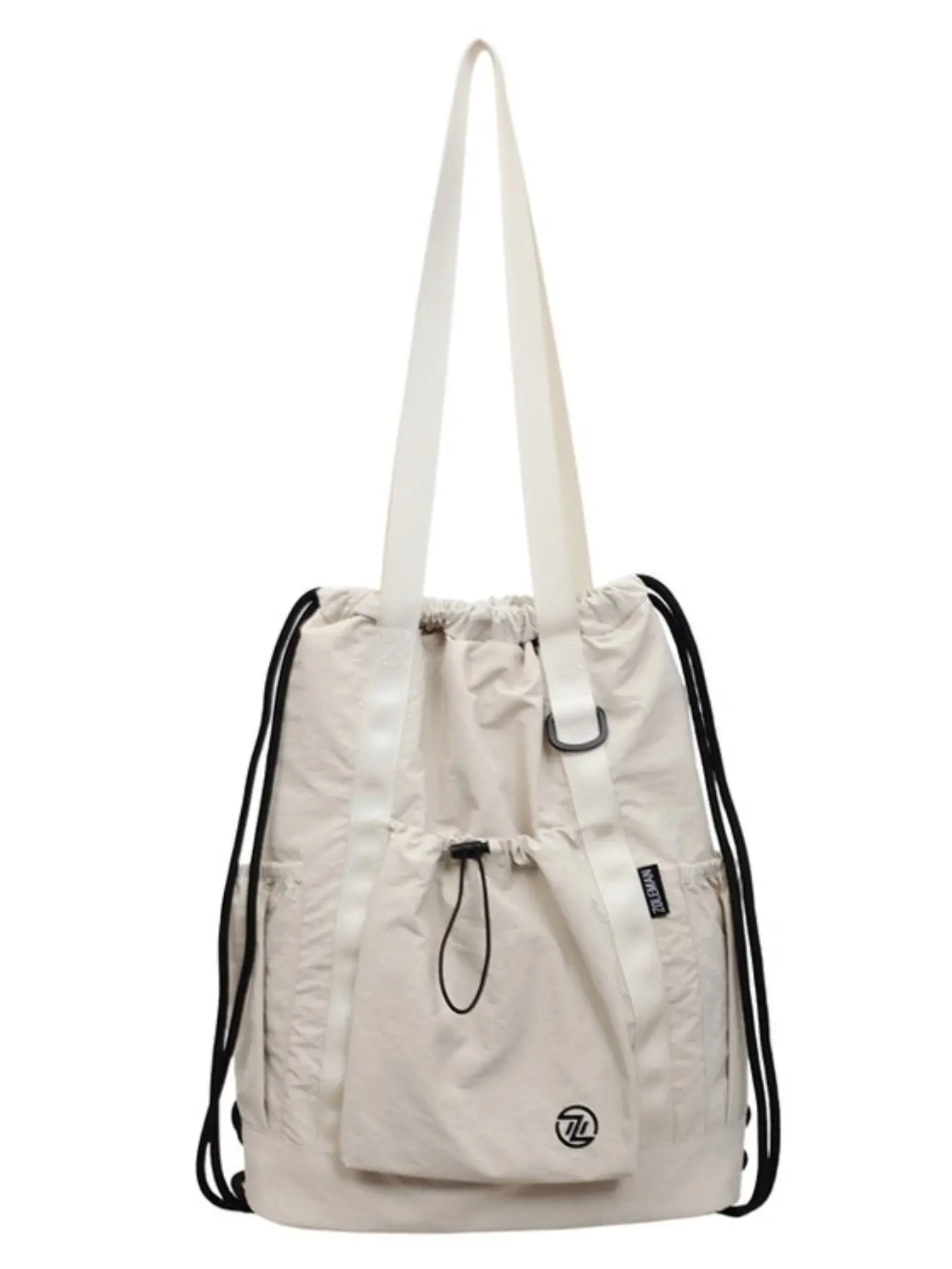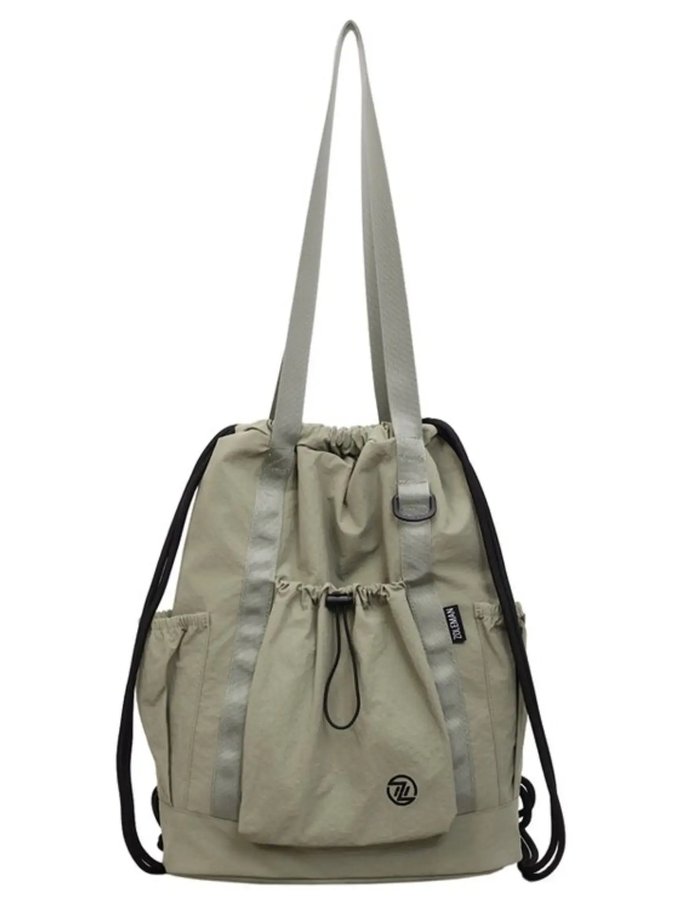 Large Capacity Drawstring Tote Backpack, Lightweight Nylon Shoulder Bag with Secure Pockets, Foldable Unisex Casual Daily Bag, Travel Fitness Shopping Bag