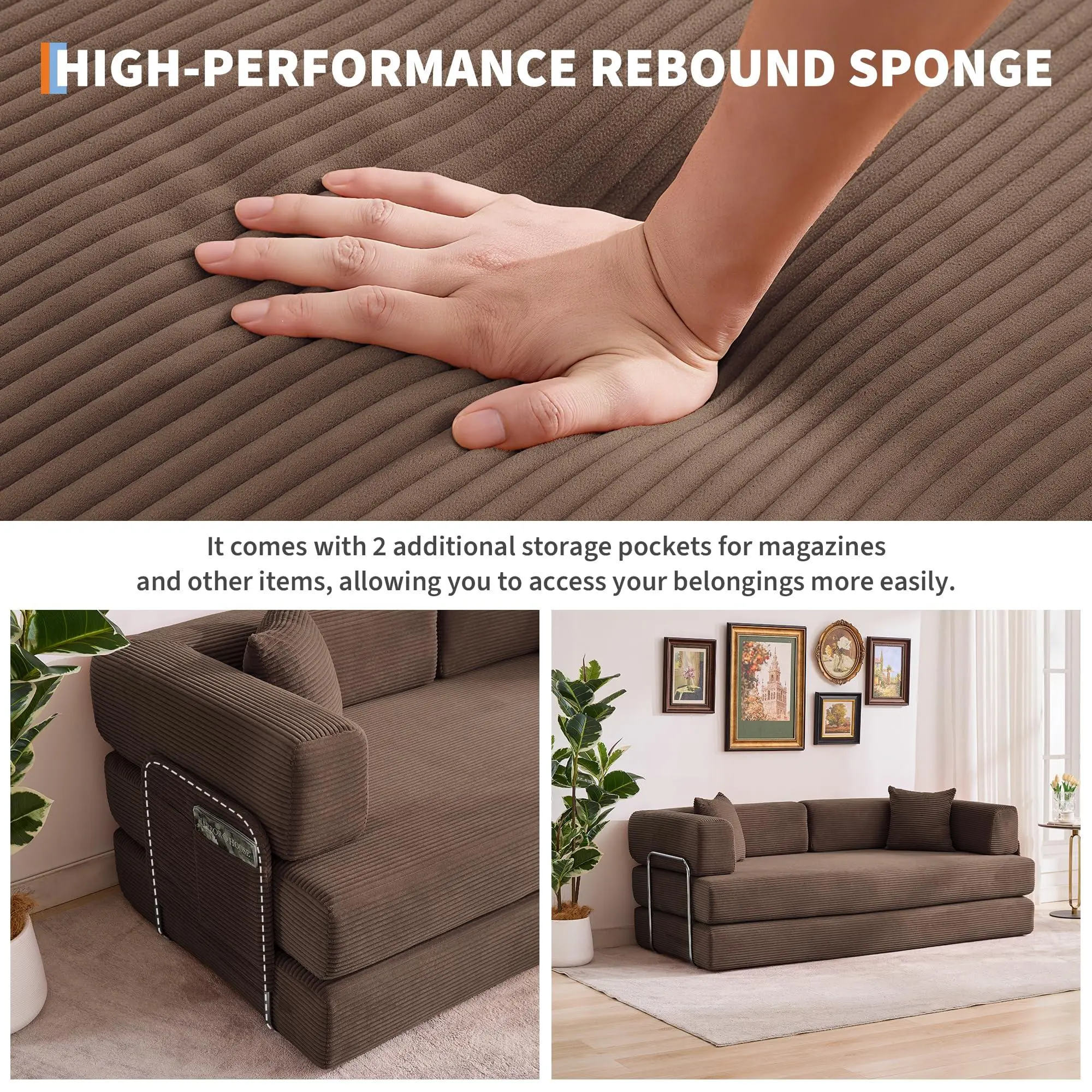 【Plush Corduroy Upholstery & Cloud-Like Comfort】 Sink into luxury with premium small-streak corduroy fabric that's both breathable and durable. Filled with high-density foam and accompanied by soft cylindrical pillows, this sofa provides the perfect balance of firm support and cloud-like comfort for all-day relaxation.