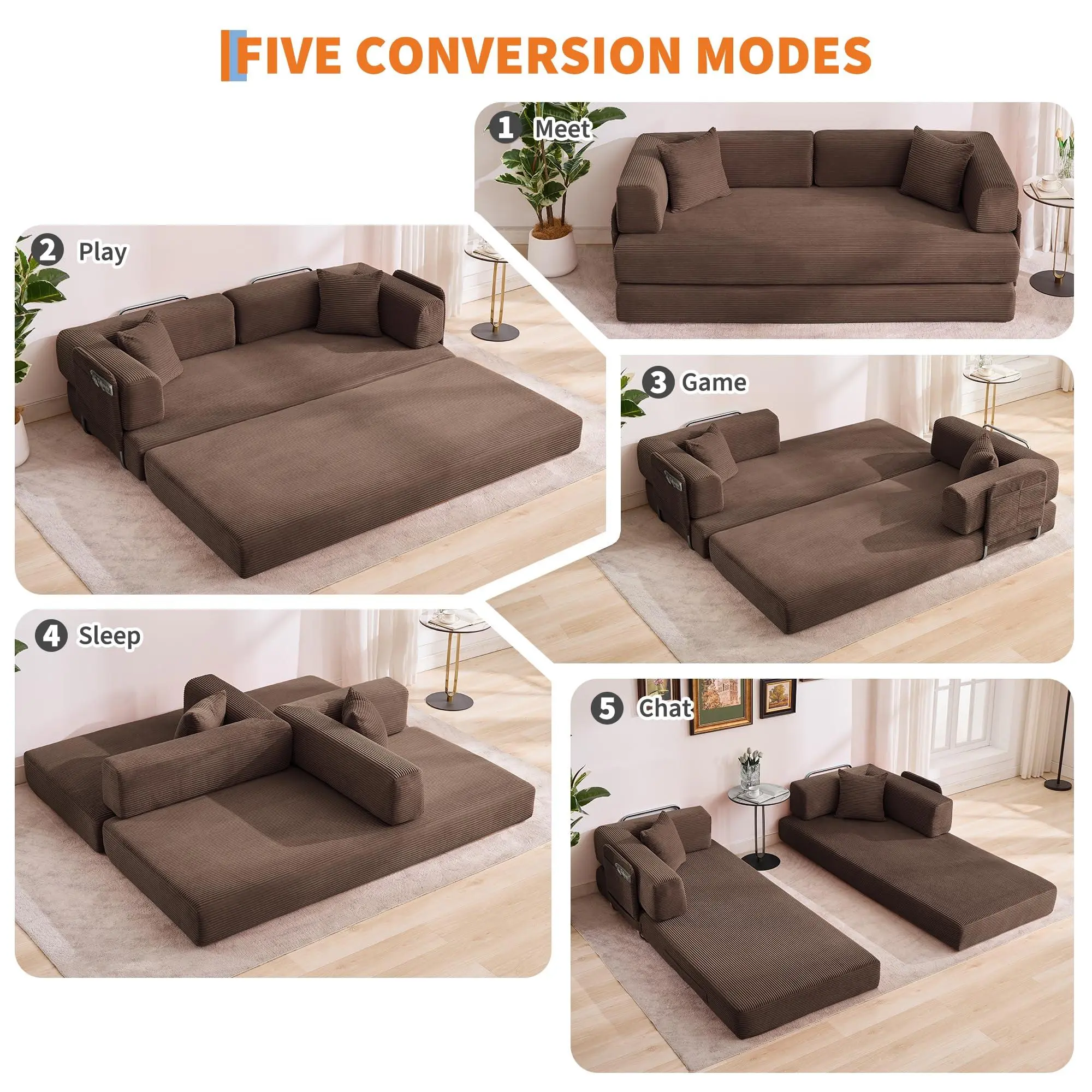 【5-in-1 Convertible Design & King-Size Sleeper】 Transform your space in seconds! This modular sofa effortlessly converts from a stylish 3-seat couch to a spacious king-size bed, offering 5 flexible configurations perfect for lounging, entertaining, or hosting overnight guests. The adjustable armrests create the perfect layout for any occasion.