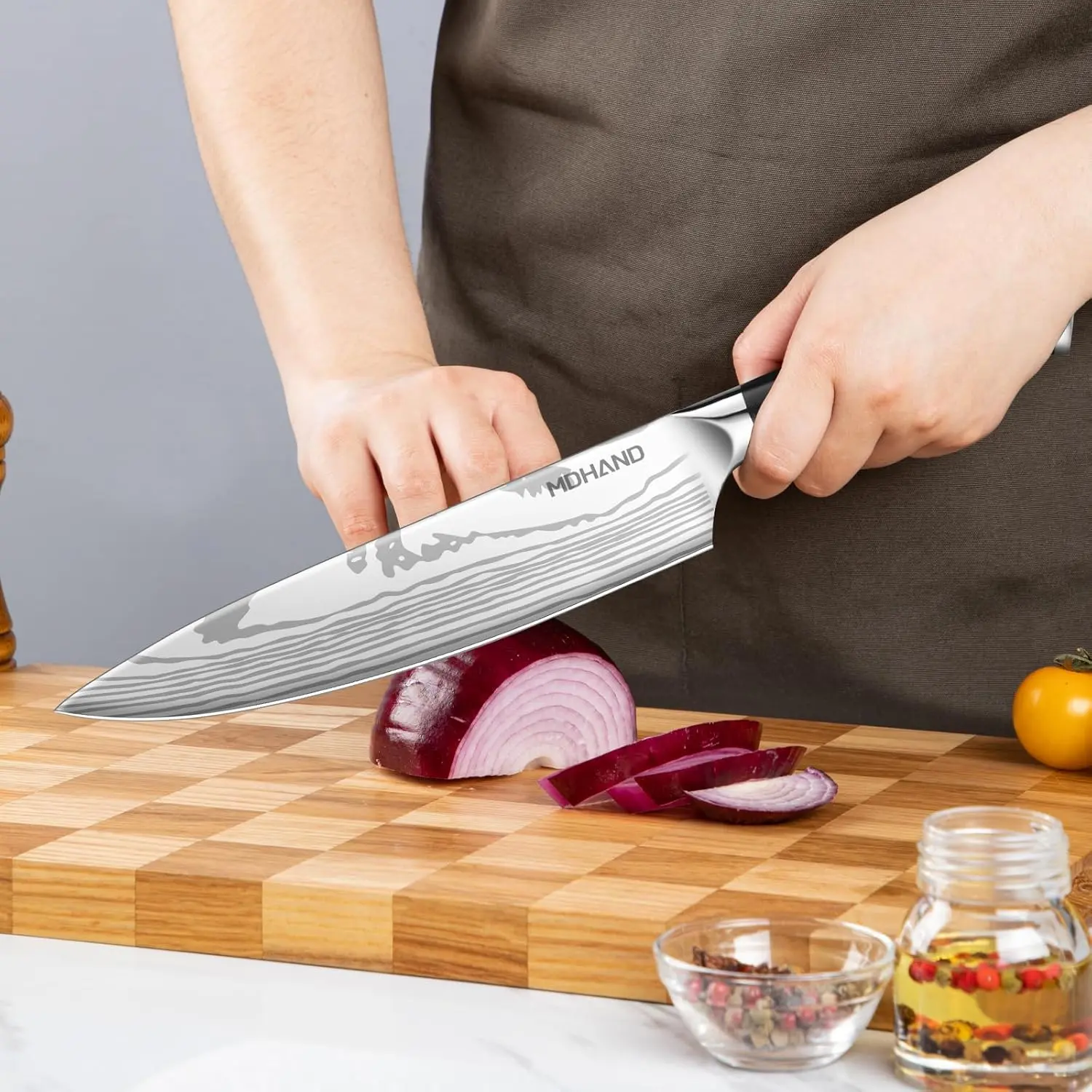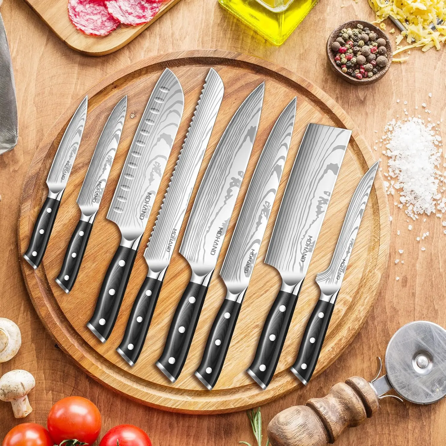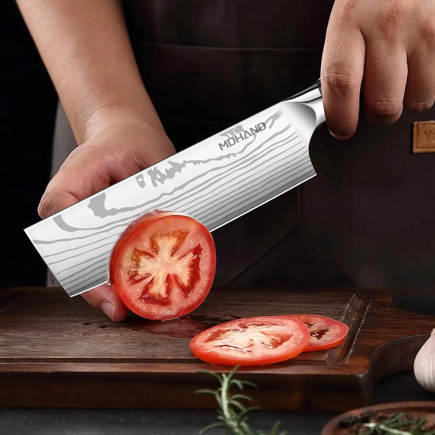 A superior kitchen knife often requires advanced and more complex production processes; this kitchen knife has undergonemore than 40 processes from cutting, straightening, heat treatment, grinding to its birth, every detail has been adjusted many times and strict control.