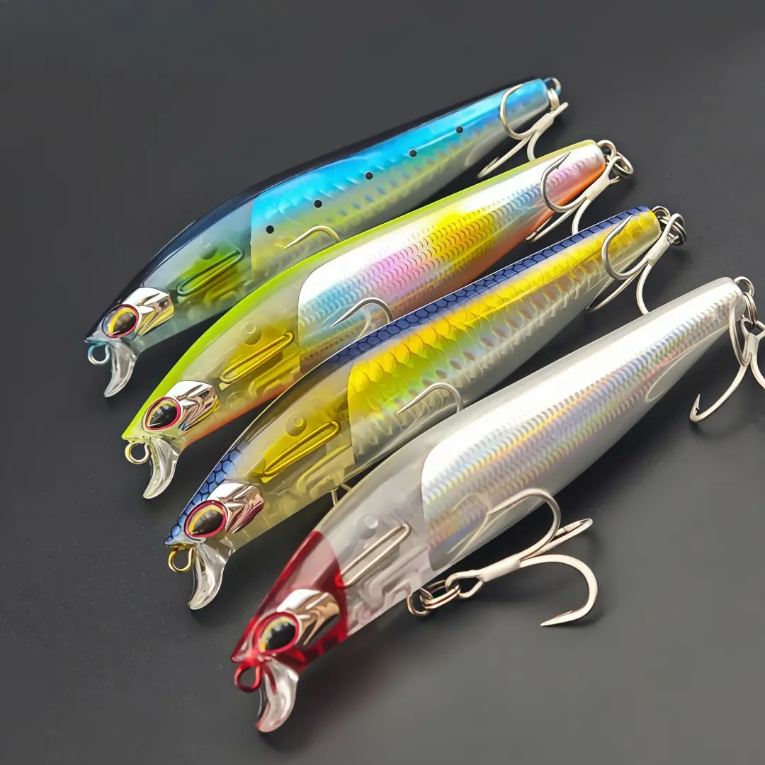 14g Topwater Floating Minnow Lure Flash Reflective Hard Bait Long Casting Artificial Fishing Lure Durable Treble Hooks Realistic Action for Freshwater Saltwater Bass Trout Outdoor Angling Fishing Tackle Supplies