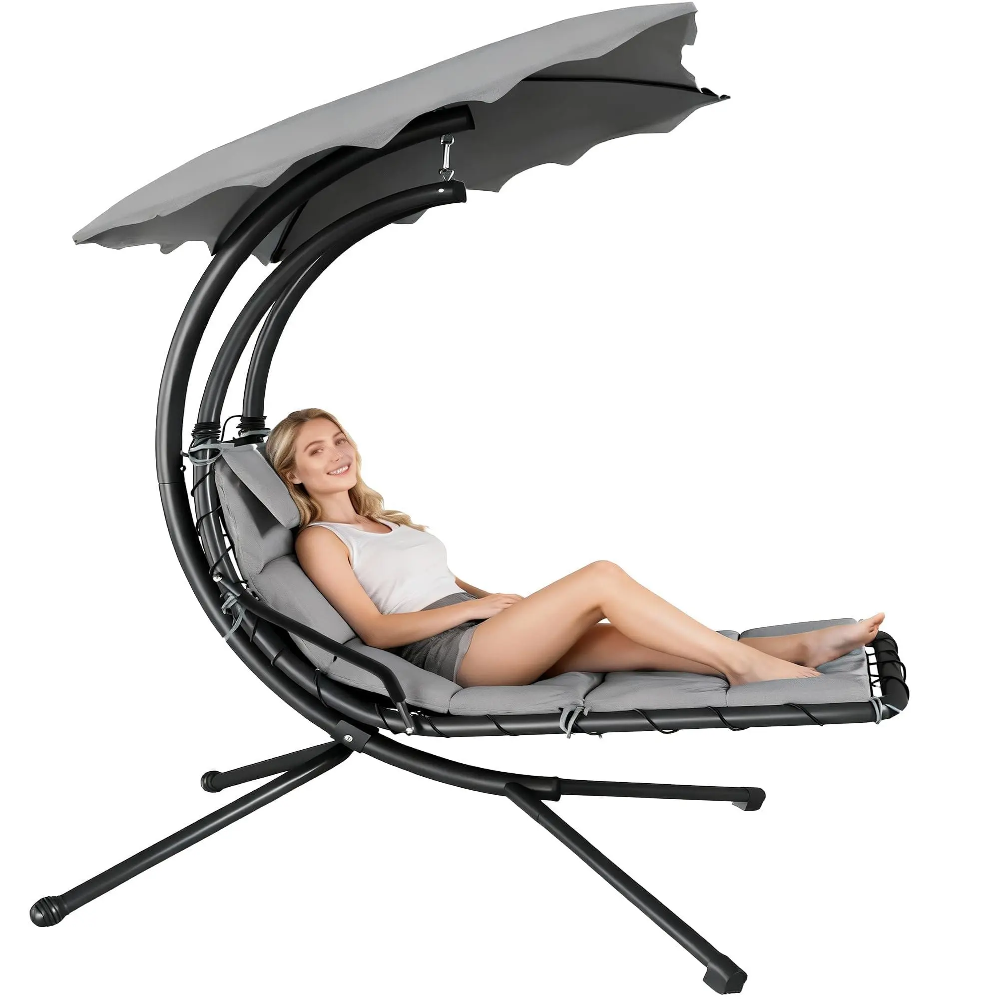 EFFORTLESSLY AIRY LOUNGING: Boasts a cozy chaise seat paired with a tempered steel cantilever, delivering a one-of-a-kind, floating relaxation experience. When stress builds up, settling into this swinging chaise lounge becomes the ideal pick for anyone seeking to ease tension