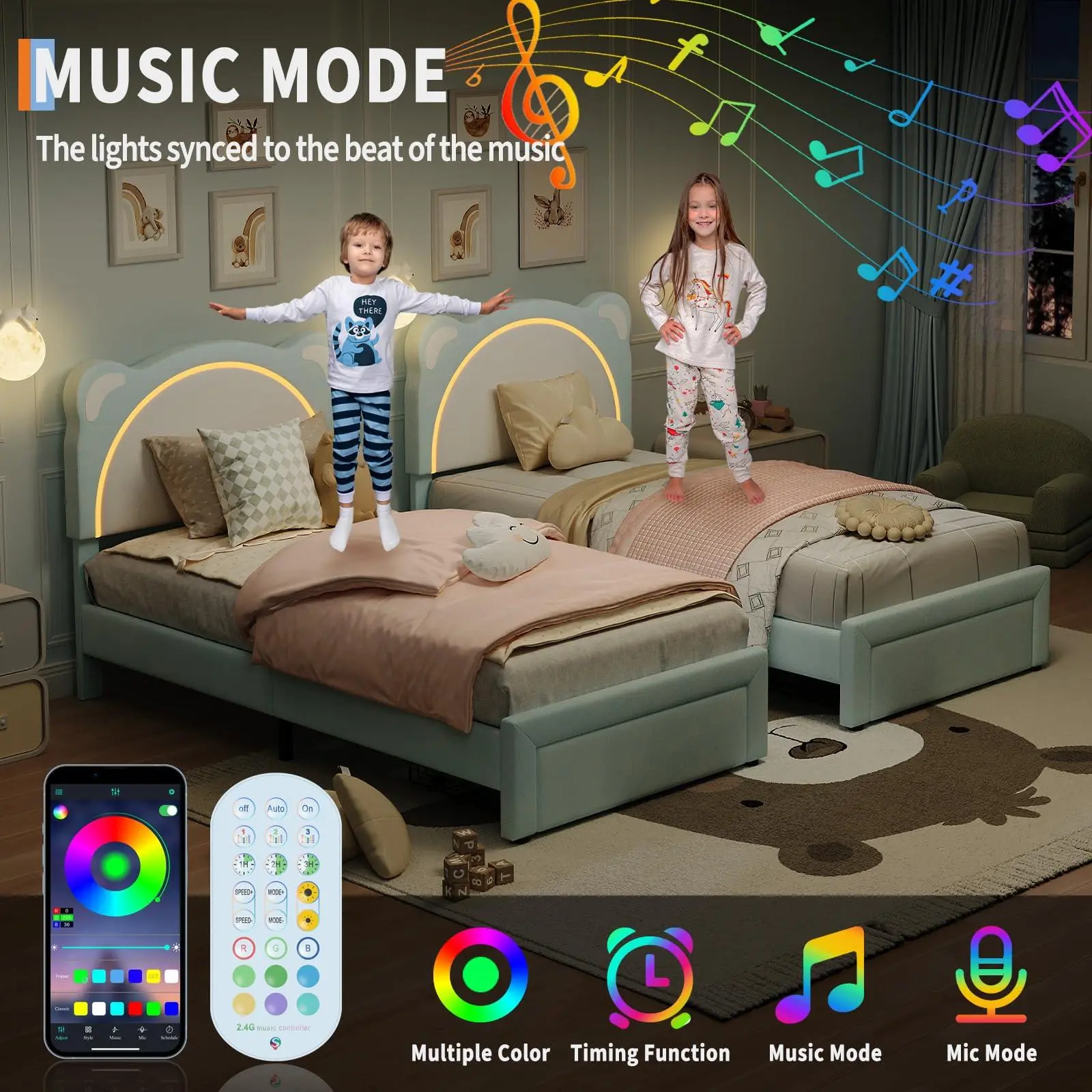 ★Smart RGB Lighting with Music Sync:Set the mood with a single tap! This LED twin xl bed frame headboard offers over 16 million colors and 20+ dynamic lighting modes, controllable via app or remote. Sync lights to your favorite music for a vibrant party atmosphere or choose a soft glow for reading and relaxation. A perfect high-tech bed frame for modern bedrooms.