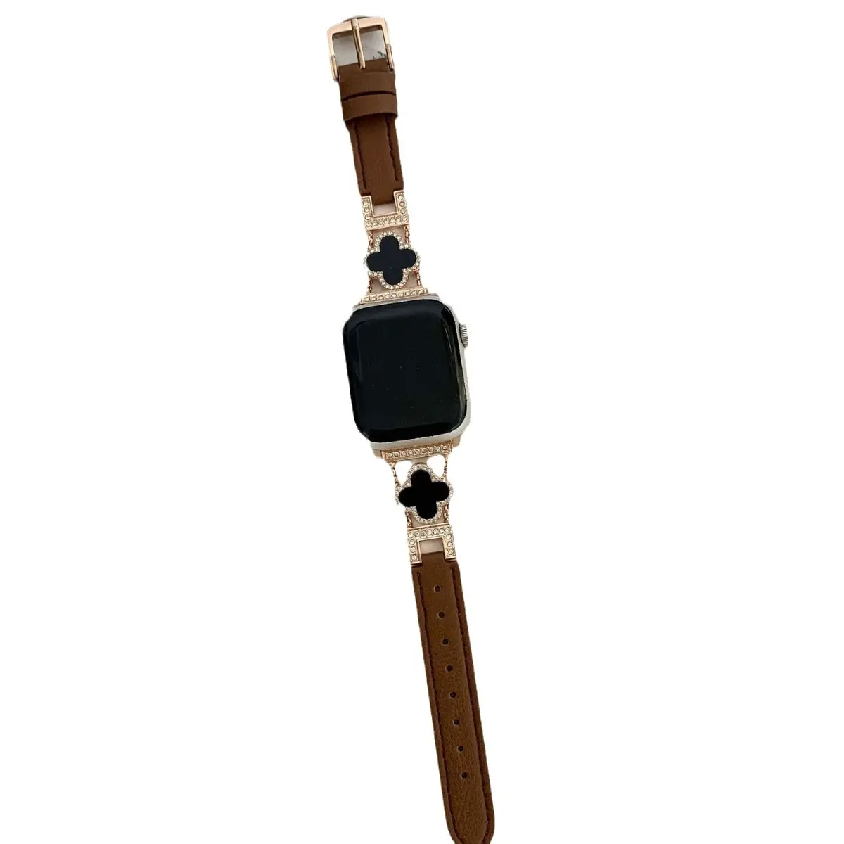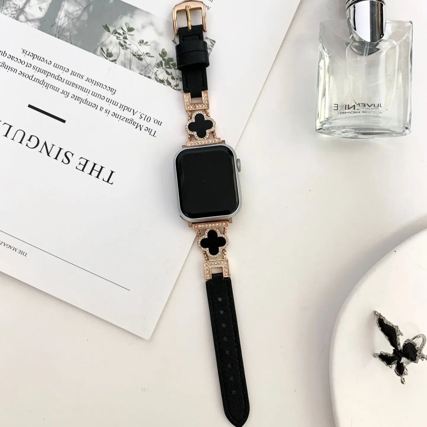 Add a touch of luck and elegance to your Apple Watch with this four-leaf clover band. Designed for Apple Watch Series 9, 8, 7, 6, and SE, this stylish strap features delicate clover charms or engraved motifs on a polished metal or leather base. The secure clasp and adjustable fit ensure all-day comfort, making it perfect for everyday wear, work, or special occasions. A meaningful accessory for those who love classic symbols of good fortune.