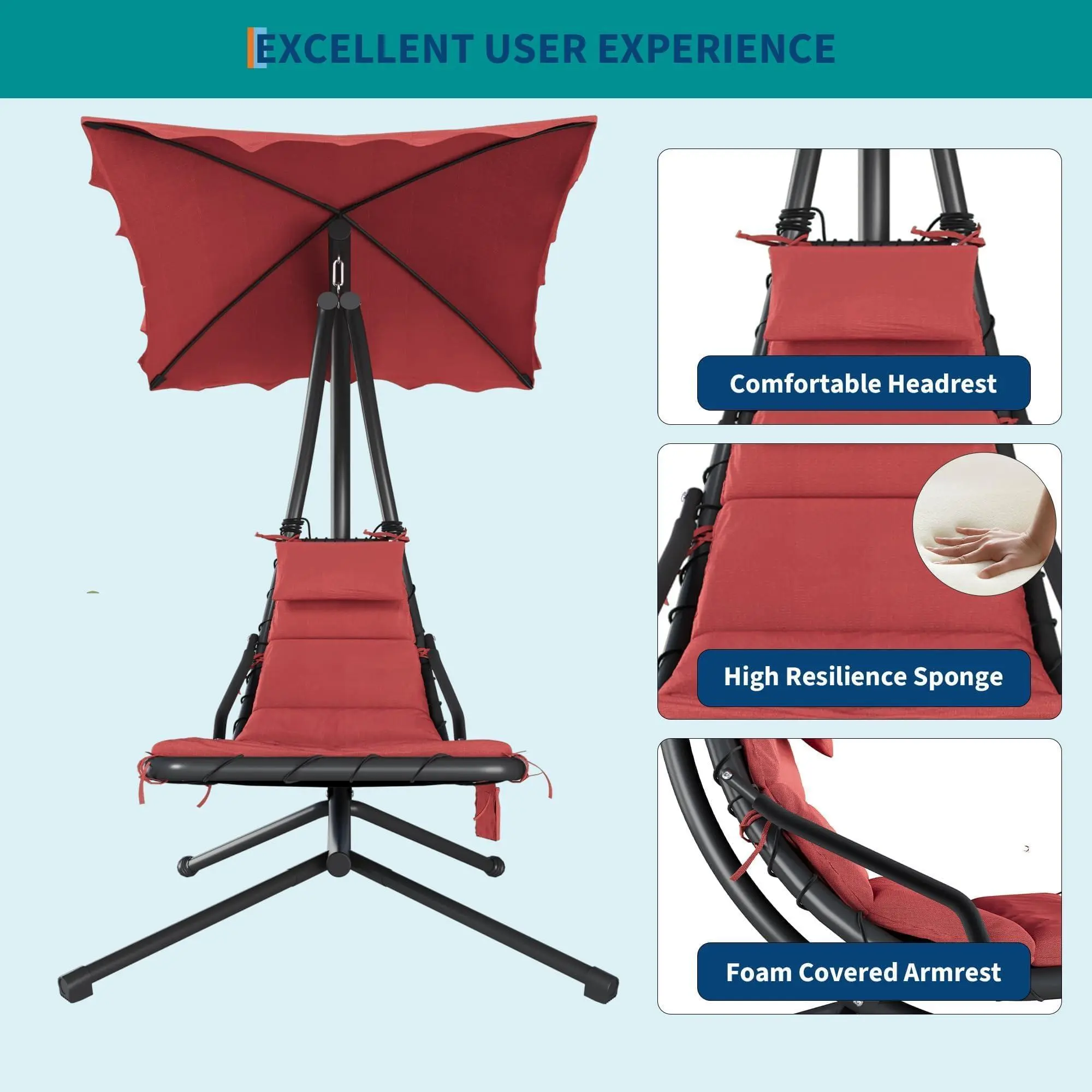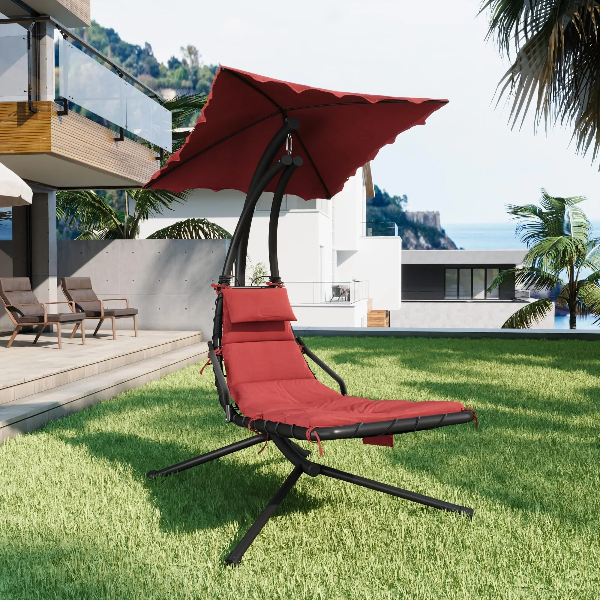 EFFORTLESSLY AIRY LOUNGING: Boasts a cozy chaise seat paired with a tempered steel cantilever, delivering a one-of-a-kind, floating relaxation experience. When stress builds up, settling into this swinging chaise lounge becomes the ideal pick for anyone seeking to ease tension