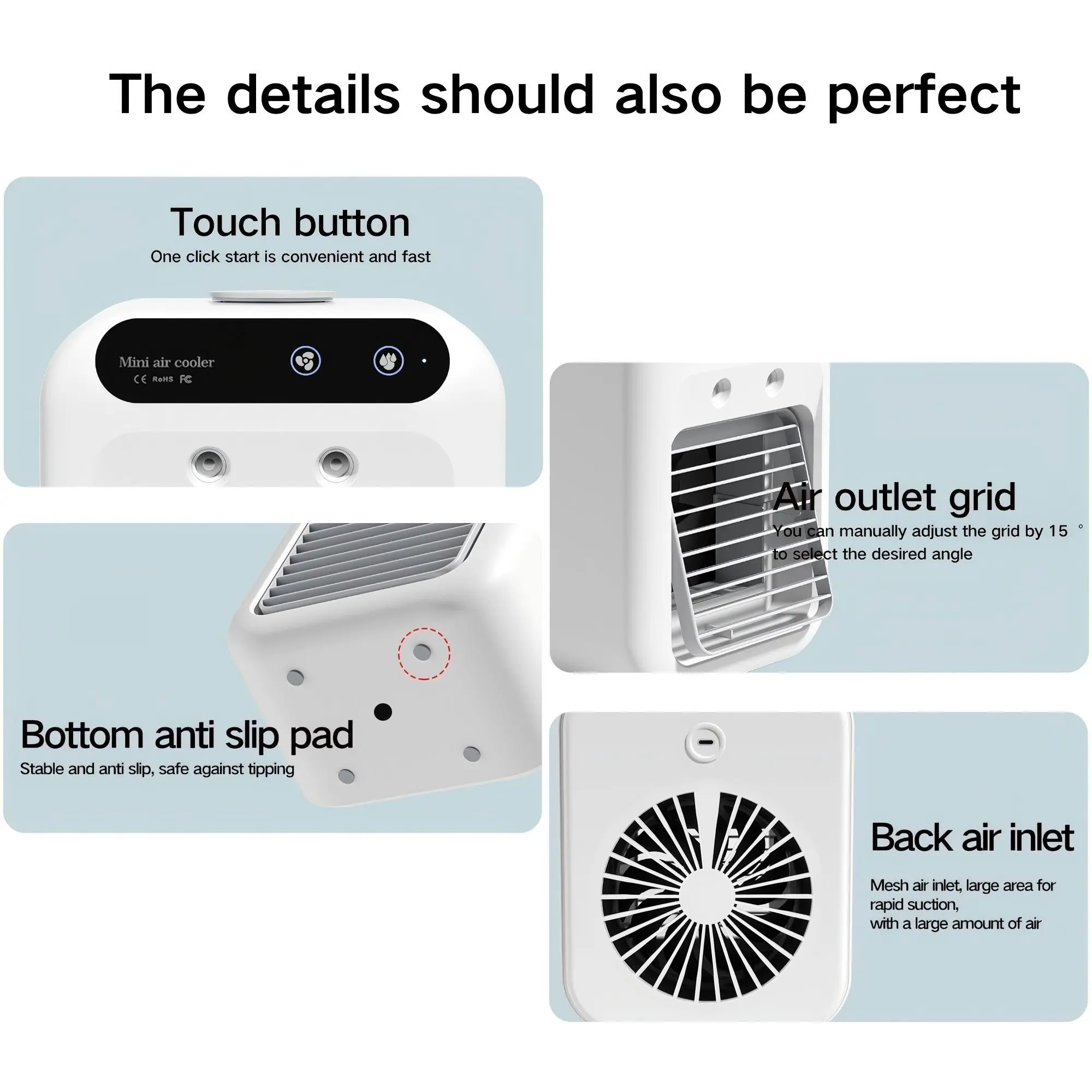 【Portable Cooling】: This mini air cooler provides effective cooling, making it an excellent choice for personal space in any environment.