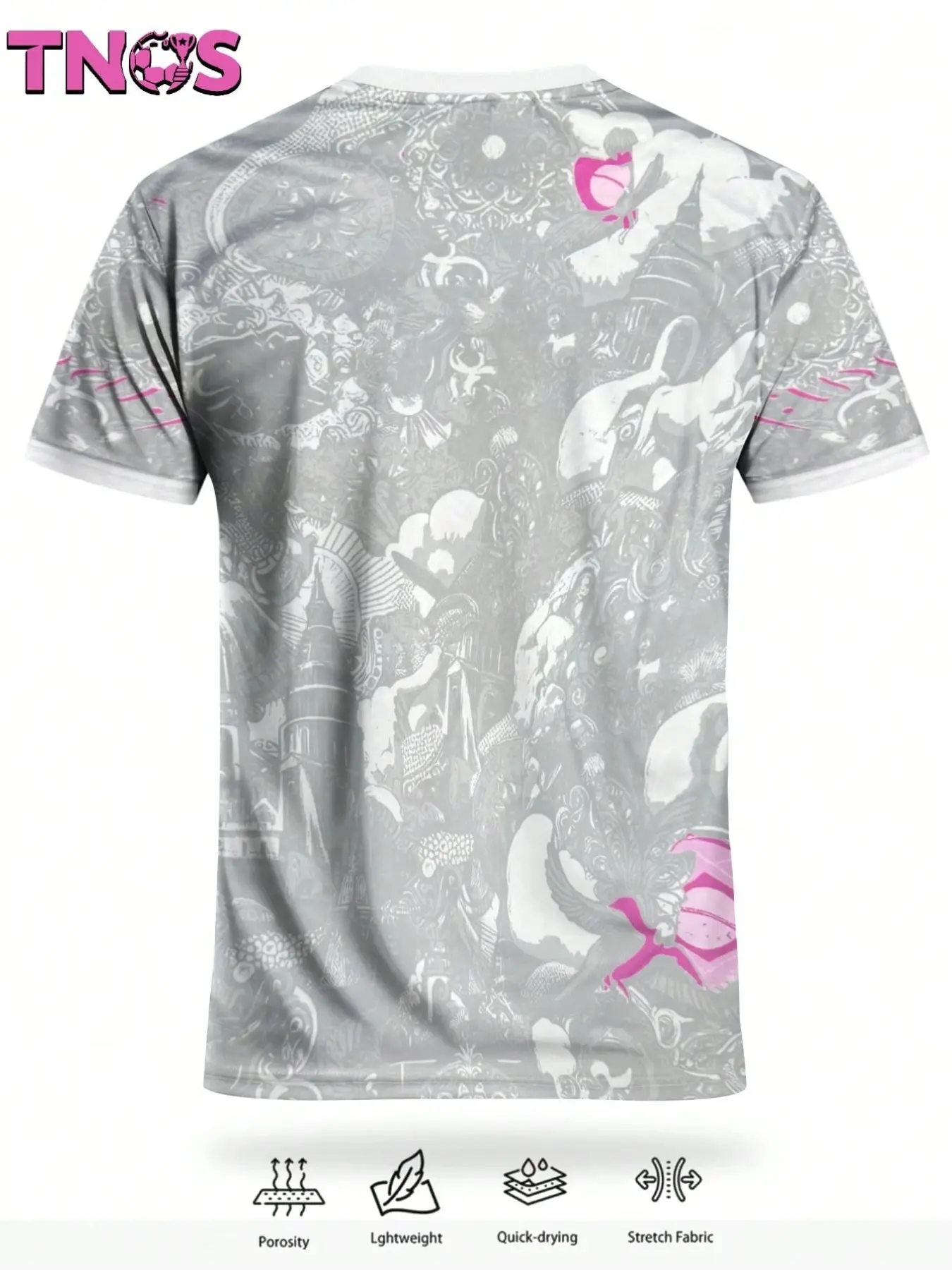 Men's Cartoon Character 23 Number Print Baseball Short Sleeve Shirt, Western Baseball Jersey Top, Casual Outdoor Sports Leisure Running Basketball Football Tee