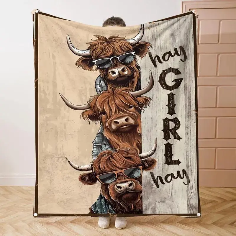 Soft Funny Throw Blanket Highland Cow Pattern Blanket, Cow Print Blanket, 1 Count Soft Comfortable Throw Blanket, Cool Bedroom Bedding Blankets, Warm Napping Blanket for Home Office Travel, Cozy Chic Blanket