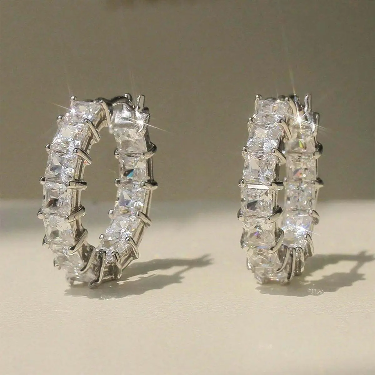European and American style square zirconia full-diamond earrings, fashionable and unique ear hooks, ins design, commuter women's earrings, factory wholesale