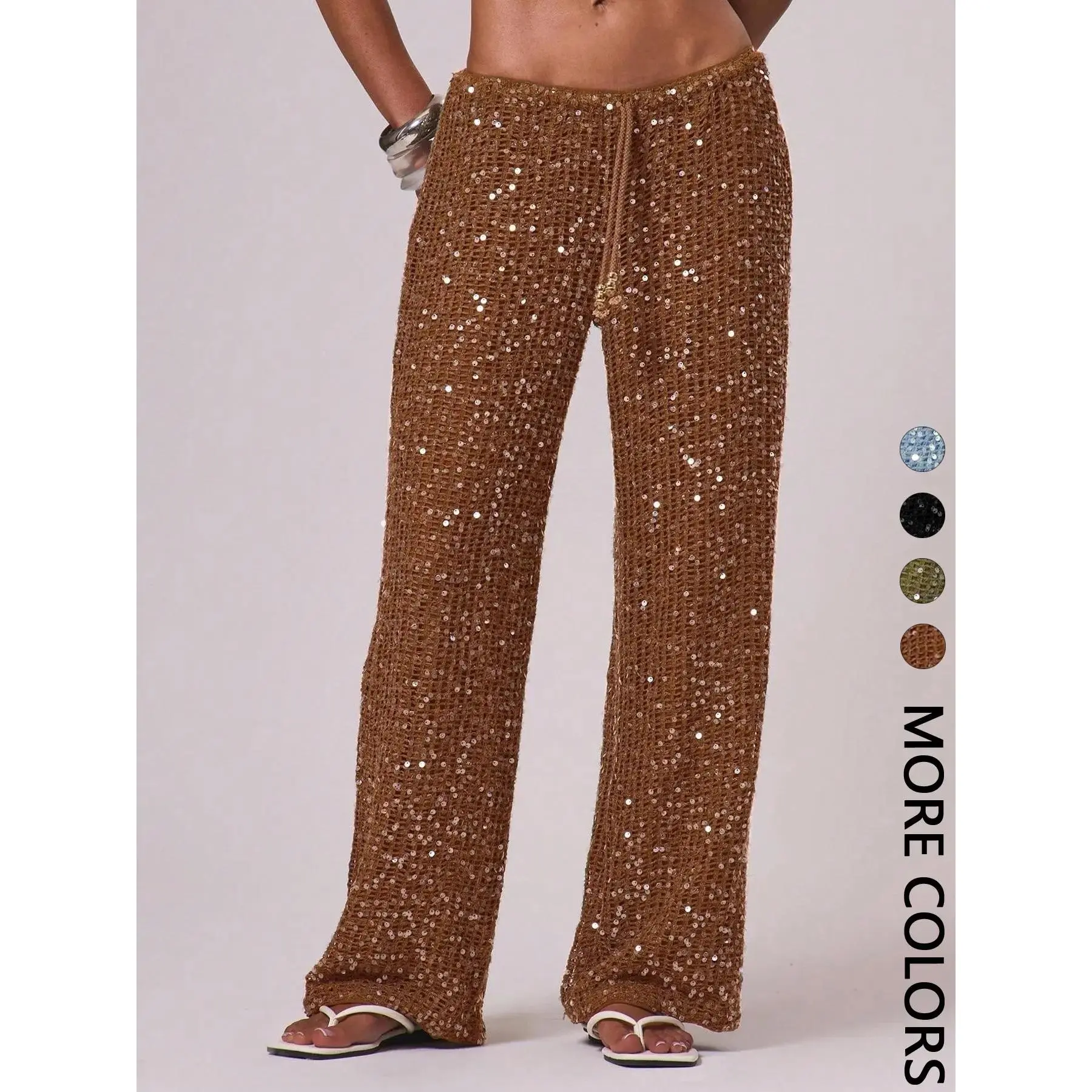 Women's Bohemian Style Beach Pants, Elegant Summer Sequined Long Trousers, Fashionable Holiday Wear, Ladies' Casual