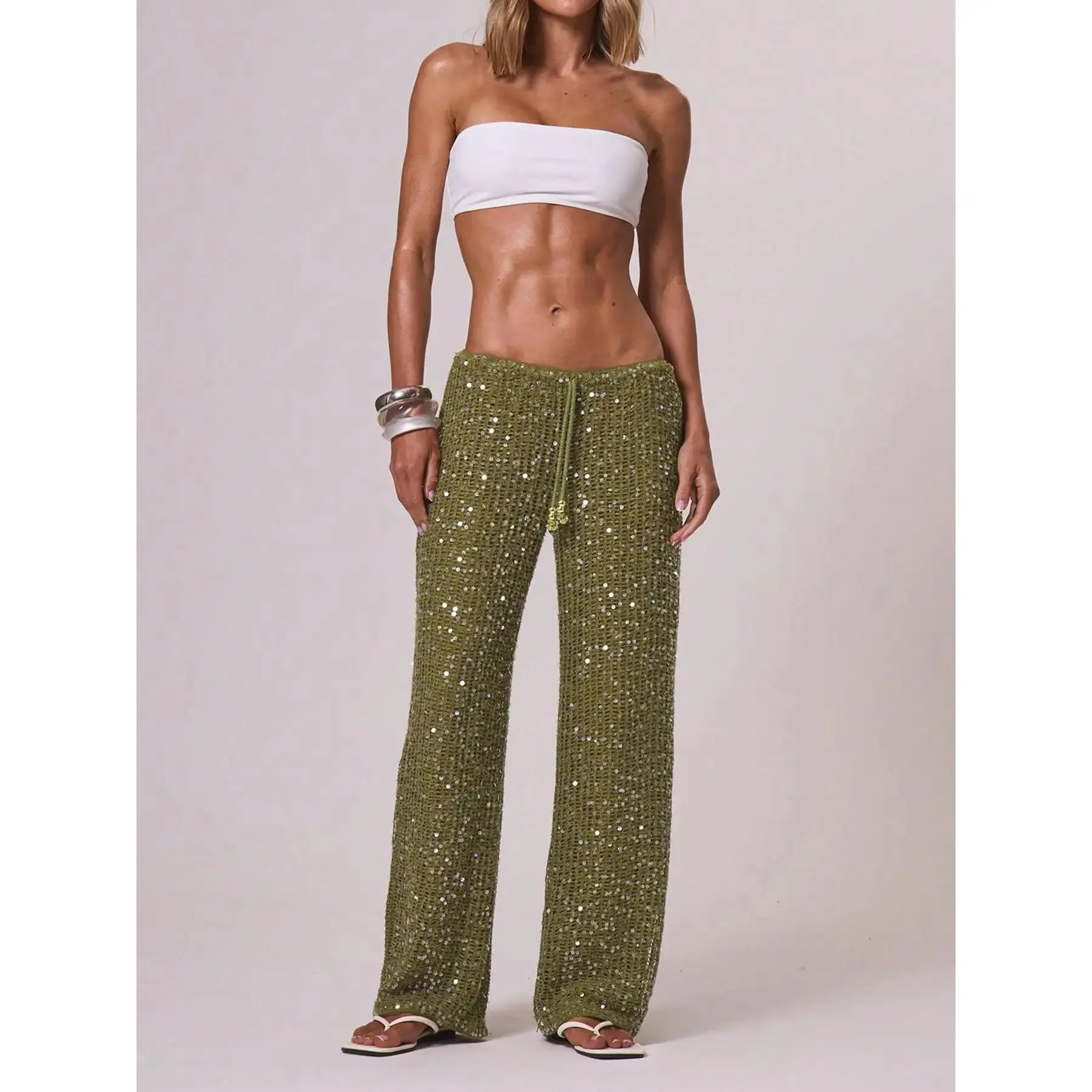 [Eye-catching sequins]: Featuring shimmering sequins, these pants stand out, adding a unique touch to your beach wardrobe.